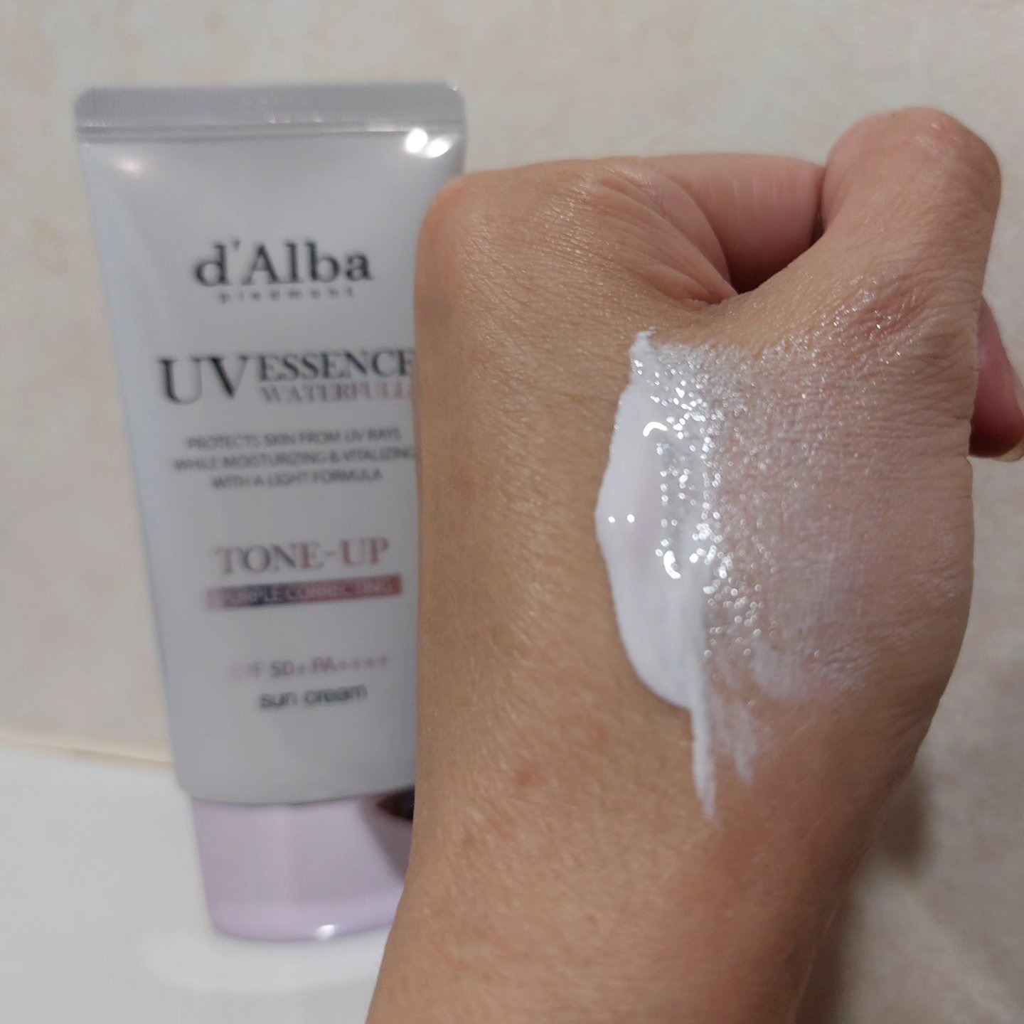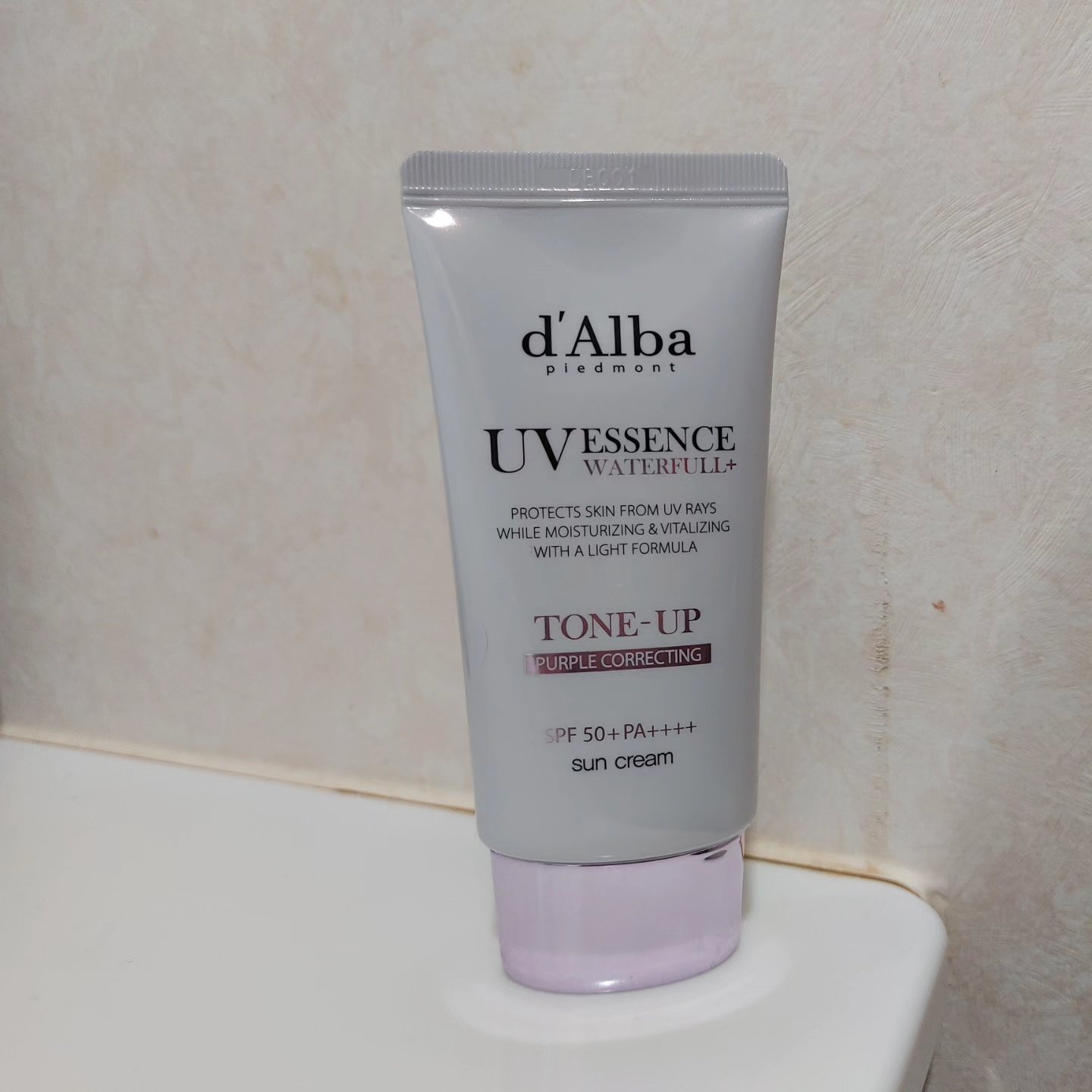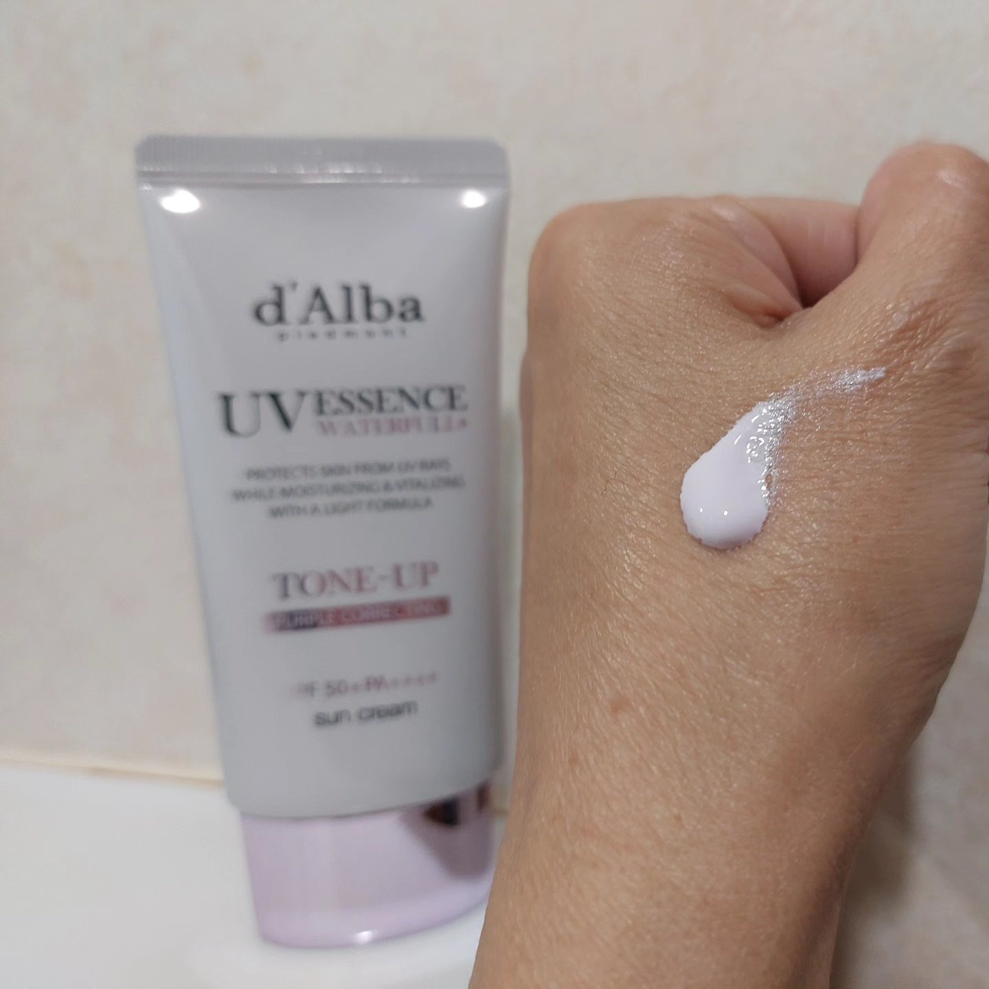 .d'Albaウォータフルトーンアップサンクリーム(パープル)SPF50+・PA++++.日焼けによるしみ、そばかすを防ぎ水のようななめらかな使用感で肌色をより明るくする化粧下地.ᐟ.ᐟ肌のくすみをカバーしながら透明感のある肌へ𖤐.サラッとし...