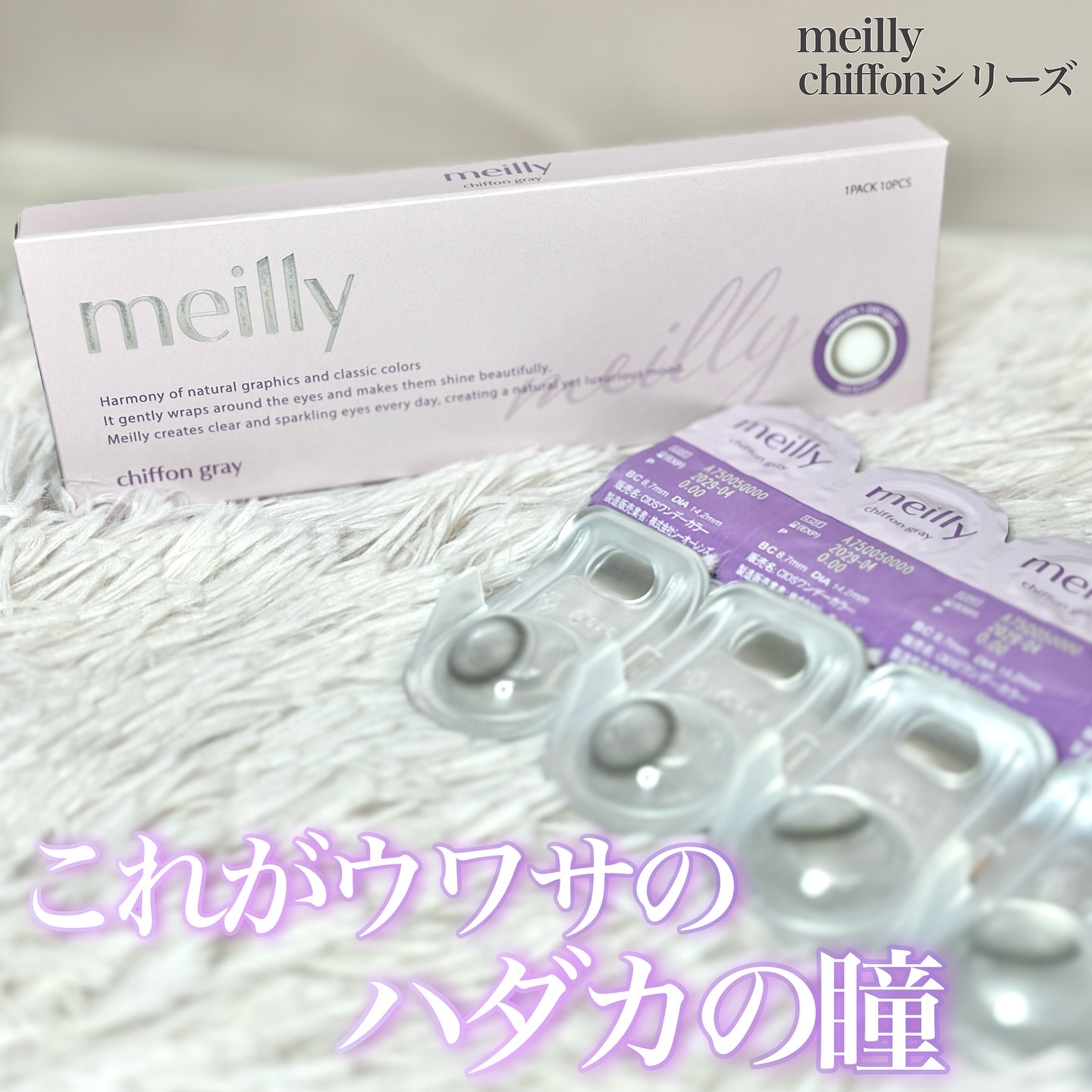 - 瞳をドレスアップ 森香澄推しカラー「chiffon pink」ついに誕生!! 幸せをまとう大人かわいいあざとレンズ ”多幸ピンク” ・ウワサPOINT1:たった3秒で印象チェンジ!奇跡のスッピンアップデート ・ウワサPOINT2:韓国で話題のカラコンブランドがデザインをバックアップ ・ウワサPOINT3:どんな日本人女性にも合うこだわりのバランス、着ける人を選ばない◎ ・まるでシフォンドレスをかぶせたような柔らかく自然なトーンアップデザイン ・2トーンカラーのグラデーションで奥ゆかしい瞳へ ・長時間着けても乾きにくい低含水処方(38.5%) ・全4色 chiffon brown / chiffon beige / chiffon gray / chiffon pink 使用上の注意 〇このレンズは1日使い捨てコンタクトレンズです。 〇ご使用の前に必ず添付文書をよく読み、正しくお使いください。 〇眼科での定期検査を受けてください。 〇目に異常を感じたら直ちにレンズの装用を中止し、眼科医の受診を受けてください。