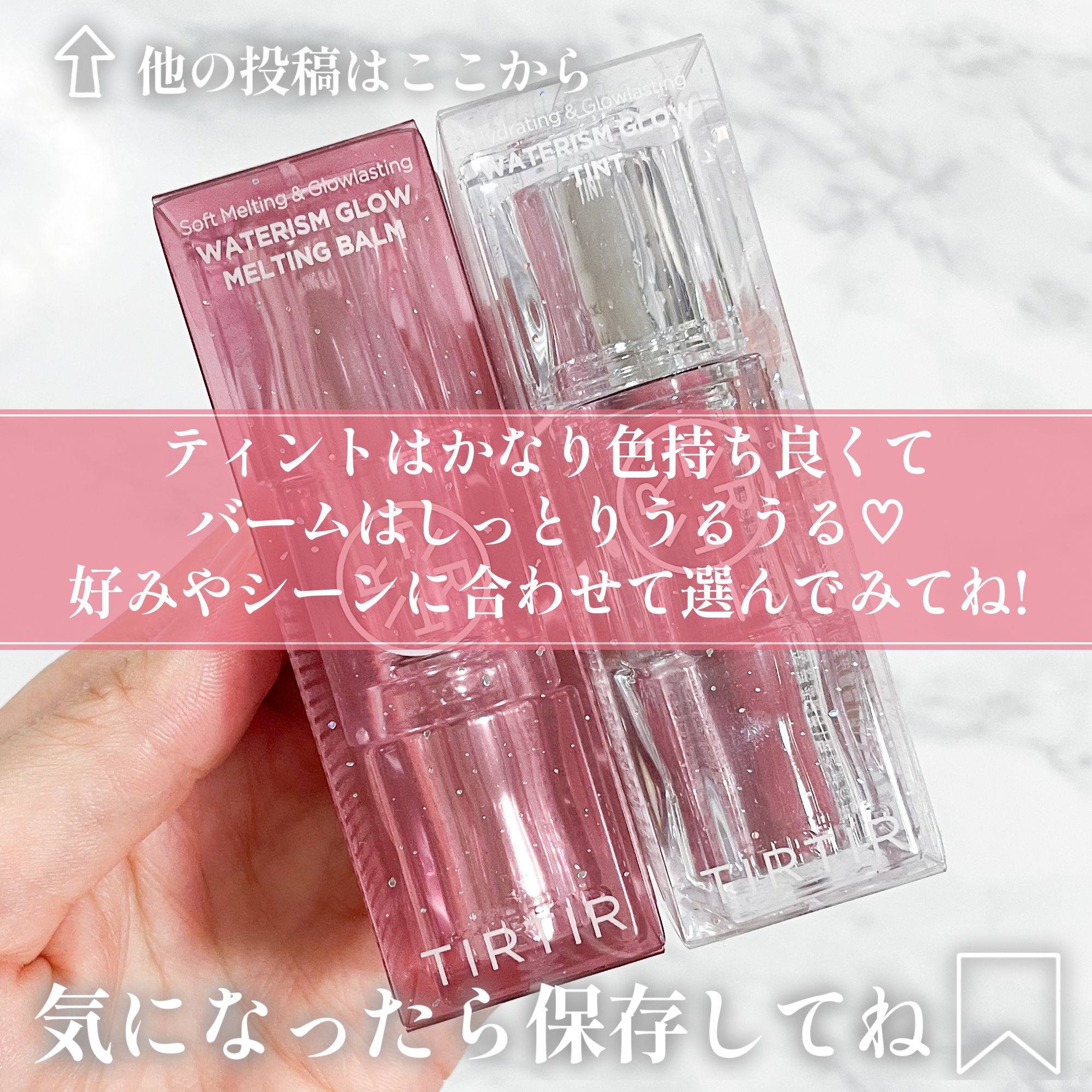 ティントは、透明感のある発色で、カラーとみずみずしい質感が持続してくれるティント!塗るときにムラになりにくいのも良かった💡 バームは、ナチュラルな発色で、ツヤっとした光沢感がきれい✨ 保湿感がほしいときに使うのがおすすめ!