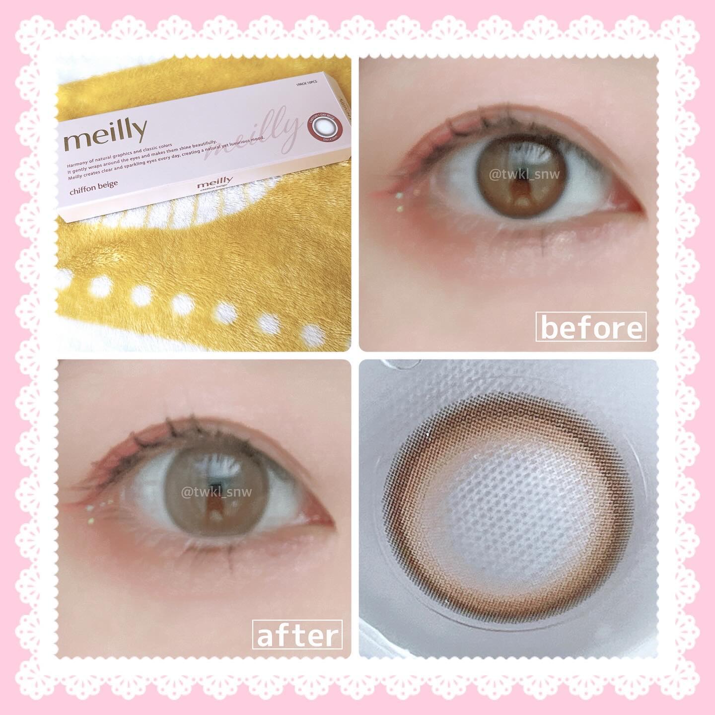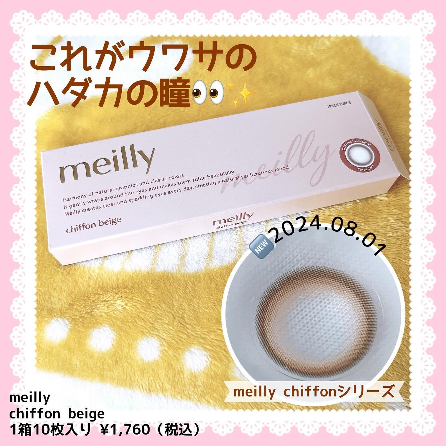 - 瞳をドレスアップ 森香澄推しカラー「chiffon pink」ついに誕生!! 幸せをまとう大人かわいいあざとレンズ ”多幸ピンク” ・ウワサPOINT1:たった3秒で印象チェンジ!奇跡のスッピンアップデート ・ウワサPOINT2:韓国で話題のカラコンブランドがデザインをバックアップ ・ウワサPOINT3:どんな日本人女性にも合うこだわりのバランス、着ける人を選ばない◎ ・まるでシフォンドレスをかぶせたような柔らかく自然なトーンアップデザイン ・2トーンカラーのグラデーションで奥ゆかしい瞳へ ・長時間着けても乾きにくい低含水処方(38.5%) ・全4色 chiffon brown / chiffon beige / chiffon gray / chiffon pink 使用上の注意 〇このレンズは1日使い捨てコンタクトレンズです。 〇ご使用の前に必ず添付文書をよく読み、正しくお使いください。 〇眼科での定期検査を受けてください。 〇目に異常を感じたら直ちにレンズの装用を中止し、眼科医の受診を受けてください。