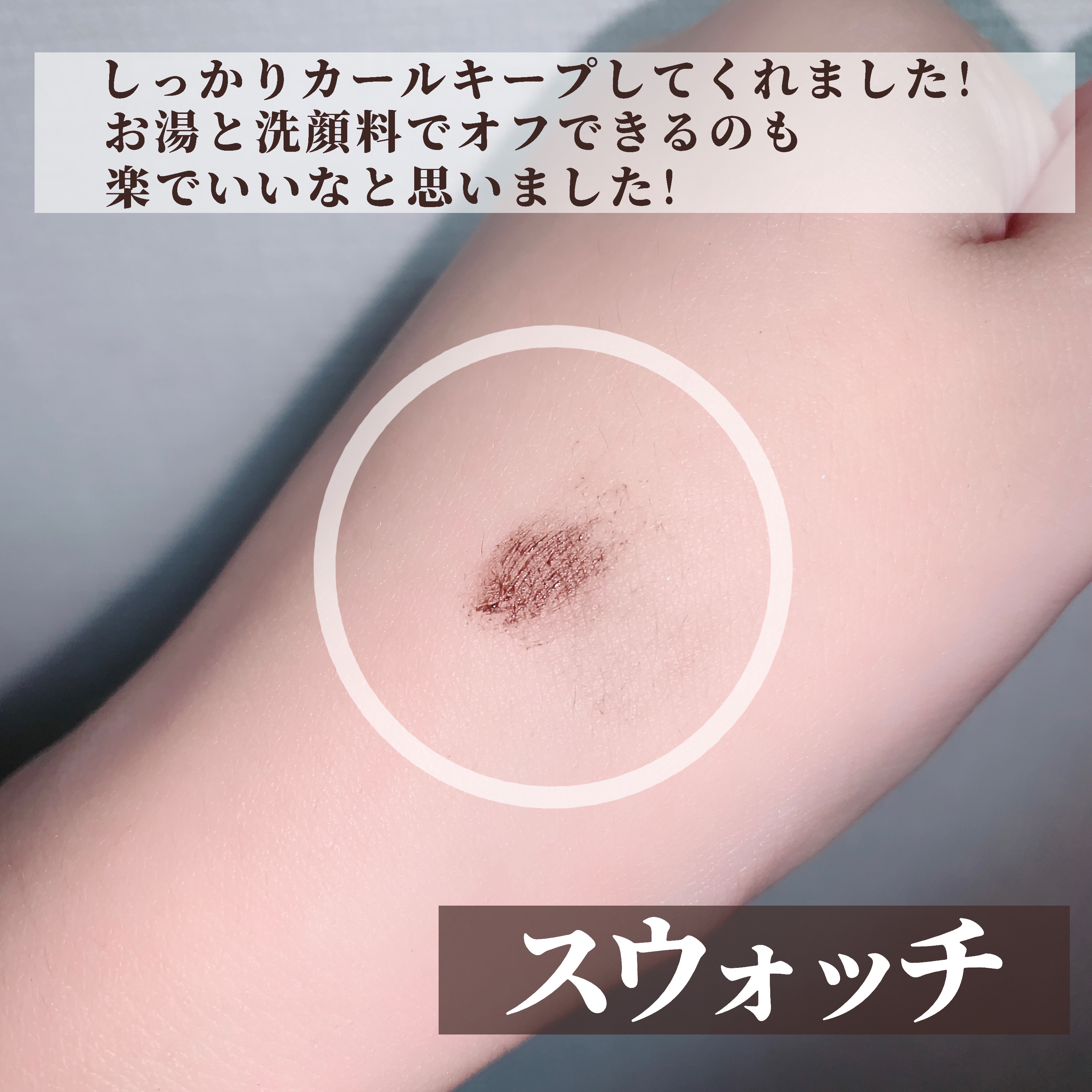 筆が細いのでとても描きやすく、細いラインも太いラインも自由自在です!! また、こすれにも強いので安心♪ 落とす時はお湯で落とせるので楽でいいですよね! 今回頂いた新色コッパーブラウンは明るめのブラウンでとっても可愛い色味です! ブラウンですが夏っぽいオレンジメイクに似合いそうなカラーで、ブラックよりも抜け感が出ます✨