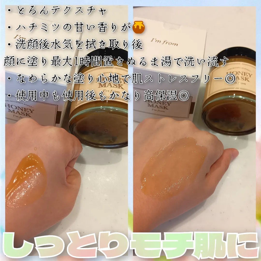 I'mfromハニーマスク/フィグスクラブマスク韓国発の自然派スキンケアブランド「I'mfrom」の人気フェイスマスク!ハニーマスクは天然ハチミツをたっぷり配合。濃厚なハチミツの香りとねっとりしたテクスチャーが特徴で、まるで本物のハチミツを塗...