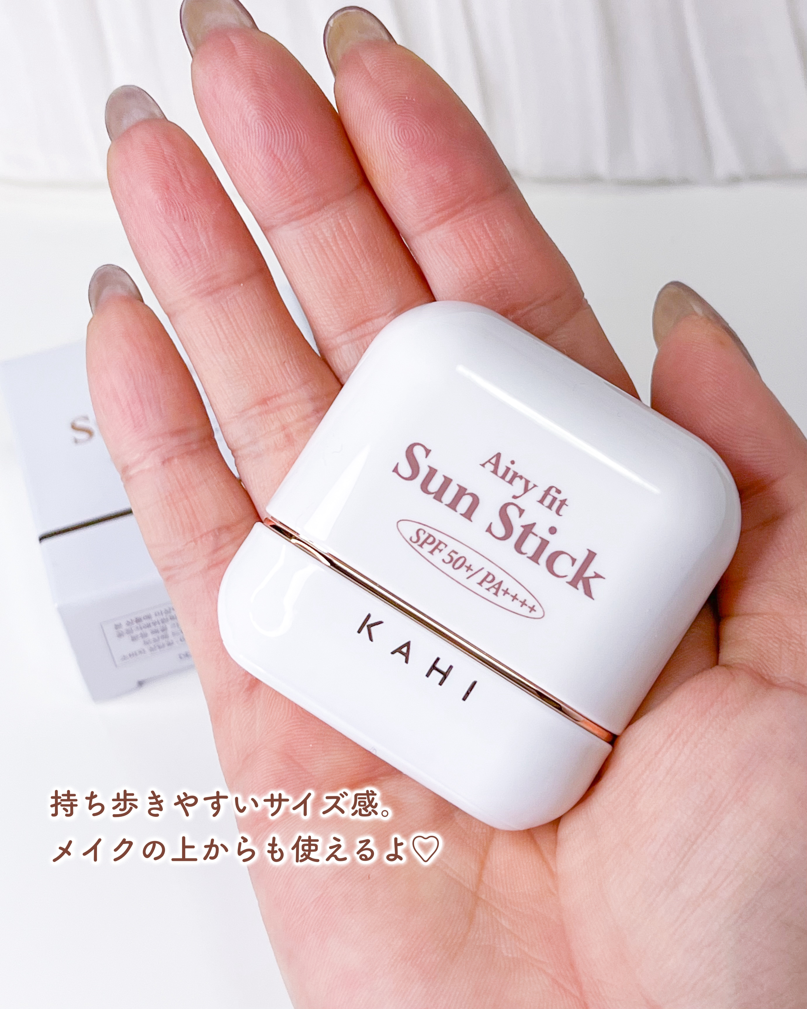 - ベタつきやテカりがなく、サラッとしたエアリーなテクスチャー。 手を汚さずに直接塗れて、メイクの上から塗り直しが可能です。 水や汗はもちろん、砂がついてもサラサラだから、レジャーシーンでも大活躍すること間違いなし。 空気のような軽さで密着し、べたつかずサラサラの肌に。 独自開発のウォーターブースティング技術を採用、長時間UVケアを叶える日焼け止めスティック。 #エアリーフィット #持ち運びサイズ #いつでもどこでも #メイクの上にもさらっと密着 ☑SPF50+、PA++++ ☑3種のプルーフ: ①水に強いウォータープルーフ ②サラサラで砂が付きにくいサンドプルーフ ③汗や皮脂で落ちにくいスウェットプルーフ ☑2つの独自開発技術採用 ①ウォーターブースティング技術:汗や水分に反応してSPF効果が高まり、UVケア効果が長持ち。 ②ポリメリックハイテンパー技術:高い気温の中でも、長時間SPF効果を維持します。 ☑さらさら肌を演出: べたつかず肌のテカりを押さえ、重ね塗りをしても肌に負担のない軽い使用感。 パウダーを塗ったようなサラサラ肌に。 ☑いつでもどこでも持ち運びサイズ: 特定のイヤホンケースにぴったりはまるサイズ感。ケースに入れてキーホルダーにように持ち歩いても◎