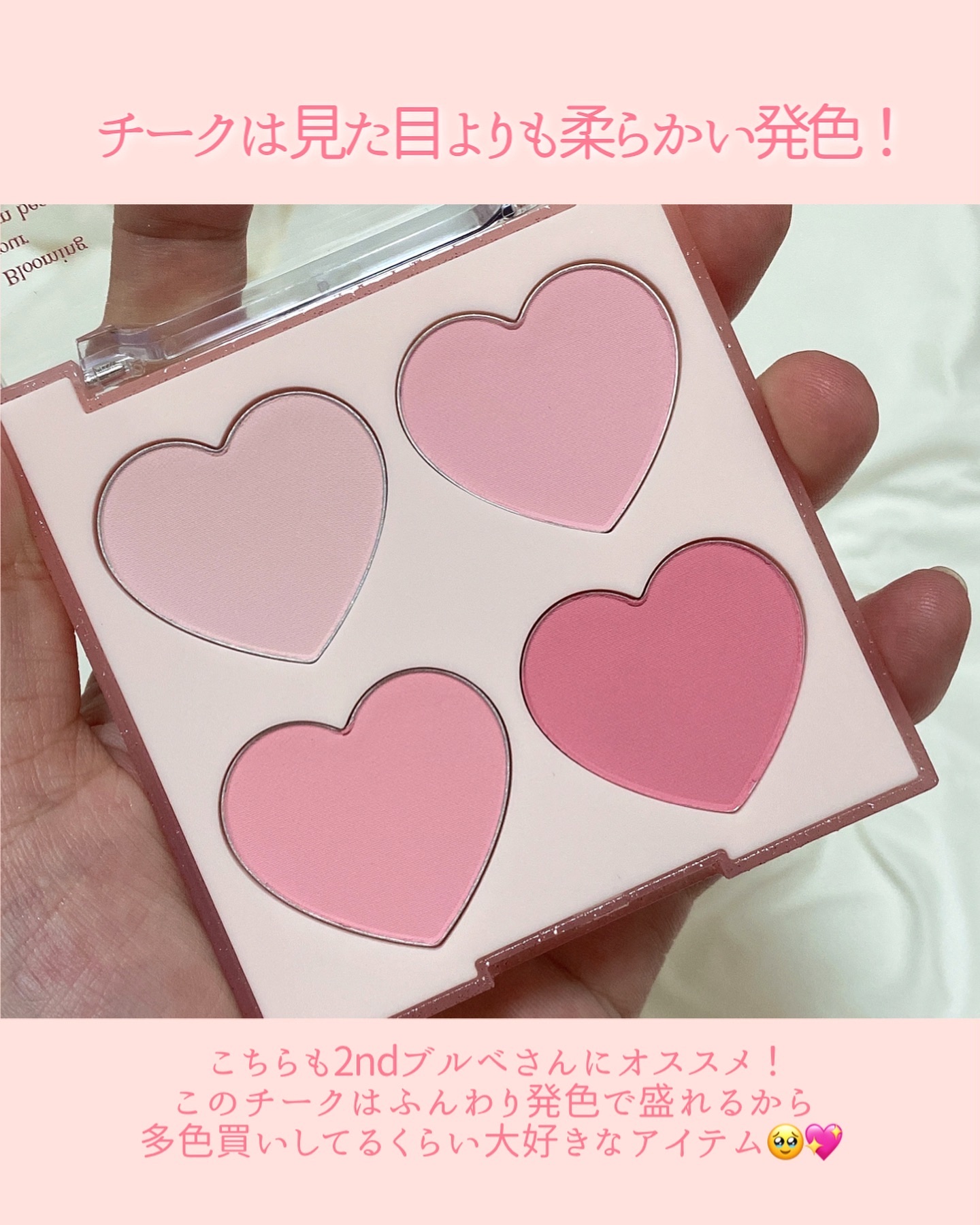 可愛過ぎてしばらく触れなかったハートコレクションついに開けたから載せる〜!!!! 色味も発色も大満足すぎてベスコス確定した🥹 結構ブルベ向けイエベ向けがハッキリ分かれてるから迷わず買えるのありがたい🙏🏻🙏🏻