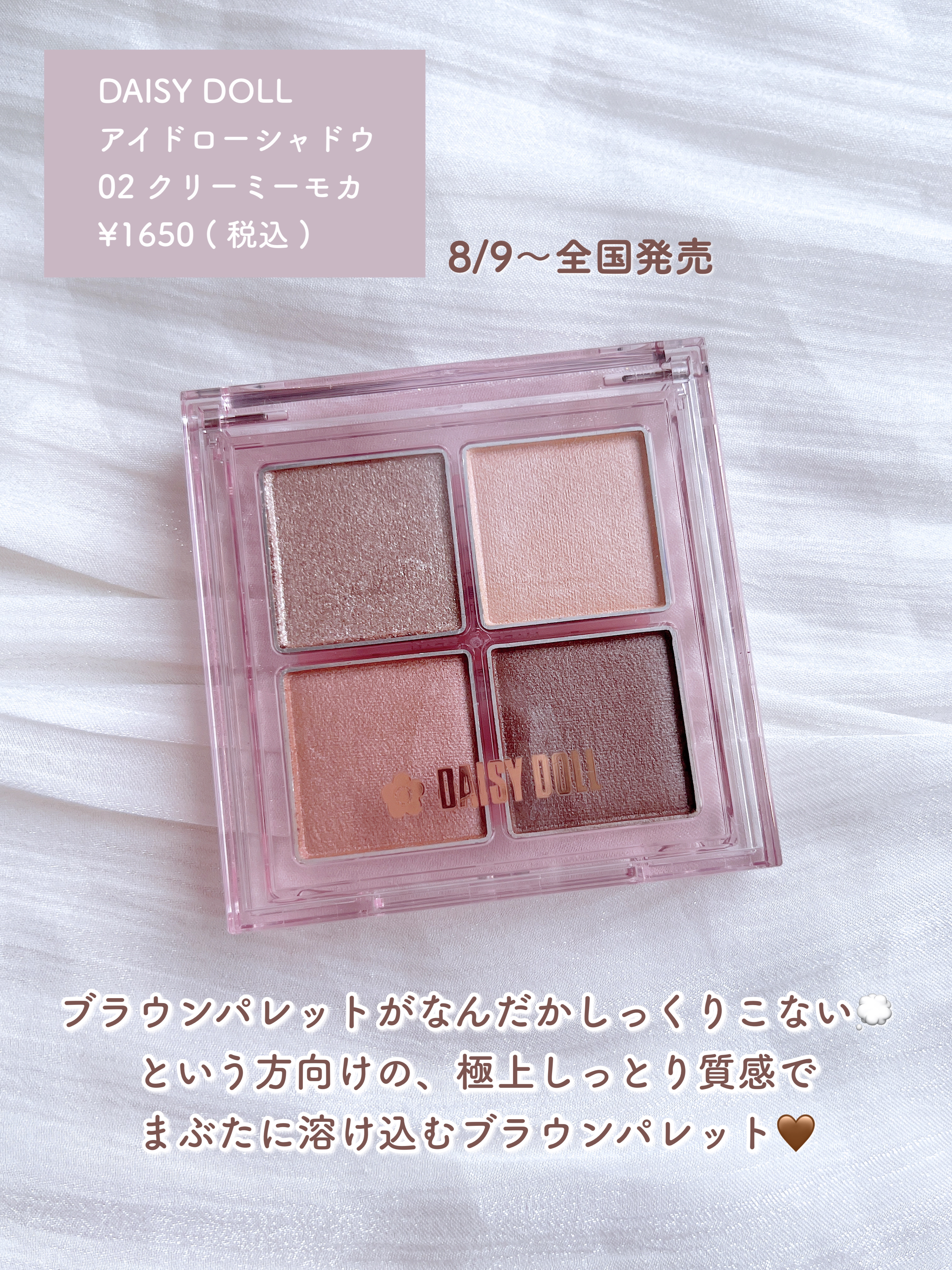 - しっかり密着、繊細なパール感じるリッチな質感のデイジードール アイドローシャドウから、トレンド感のある秋のこっくりくすみカラーが2色登場! ブラウン×オレンジ系の「05 キャラメルココア」は、絶妙なカラーバランスでいつもとひと味違うオレンジメイクが楽しめます。 ピンク系の「06 カシスフラッペ」は、くすみカラーでありながら重たくならず、淡い陰影でこなれ感のある目もとに仕上がります。 ツイード×キルティングの秋限定デザインで、柔らかな奥行きのある目もとを演出します。