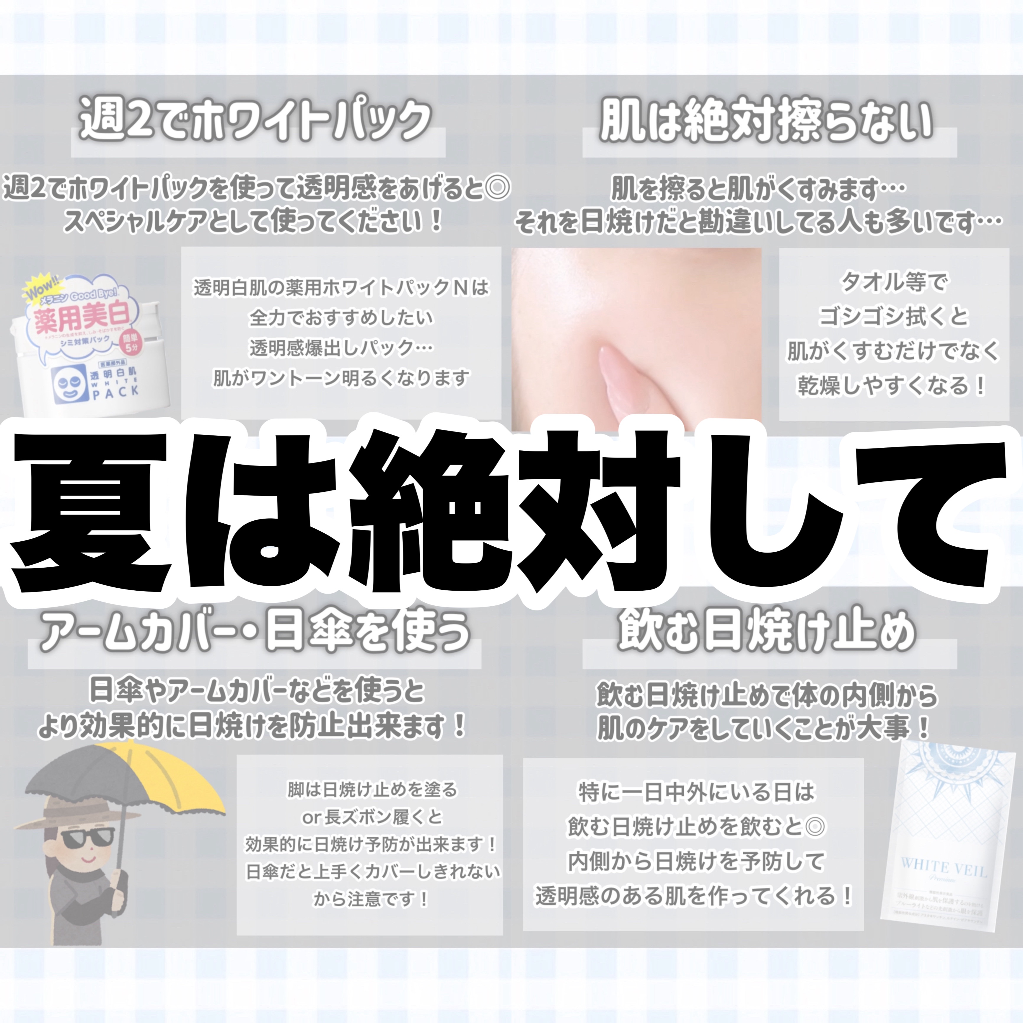 最近紫外線強すぎるよね😭もう紫外線怖い😱 でも外に出ないっていうわけにはいかないしね💦 髪に日焼け止めやってなかった!明日からやる! 日焼け対策も大事だけどアフターケアも頑張る!透明白はだのパックずっと気になってたのー!りんかちゃんと一緒に日焼け対策頑張る😤💪