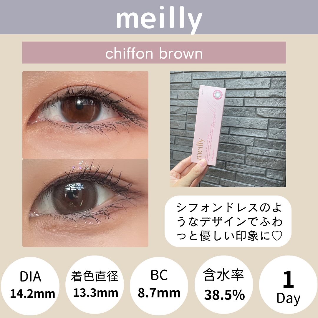 - 瞳をドレスアップ 森香澄推しカラー「chiffon pink」ついに誕生!! 幸せをまとう大人かわいいあざとレンズ ”多幸ピンク” ・ウワサPOINT1:たった3秒で印象チェンジ!奇跡のスッピンアップデート ・ウワサPOINT2:韓国で話題のカラコンブランドがデザインをバックアップ ・ウワサPOINT3:どんな日本人女性にも合うこだわりのバランス、着ける人を選ばない◎ ・まるでシフォンドレスをかぶせたような柔らかく自然なトーンアップデザイン ・2トーンカラーのグラデーションで奥ゆかしい瞳へ ・長時間着けても乾きにくい低含水処方(38.5%) ・全4色 chiffon brown / chiffon beige / chiffon gray / chiffon pink 使用上の注意 〇このレンズは1日使い捨てコンタクトレンズです。 〇ご使用の前に必ず添付文書をよく読み、正しくお使いください。 〇眼科での定期検査を受けてください。 〇目に異常を感じたら直ちにレンズの装用を中止し、眼科医の受診を受けてください。