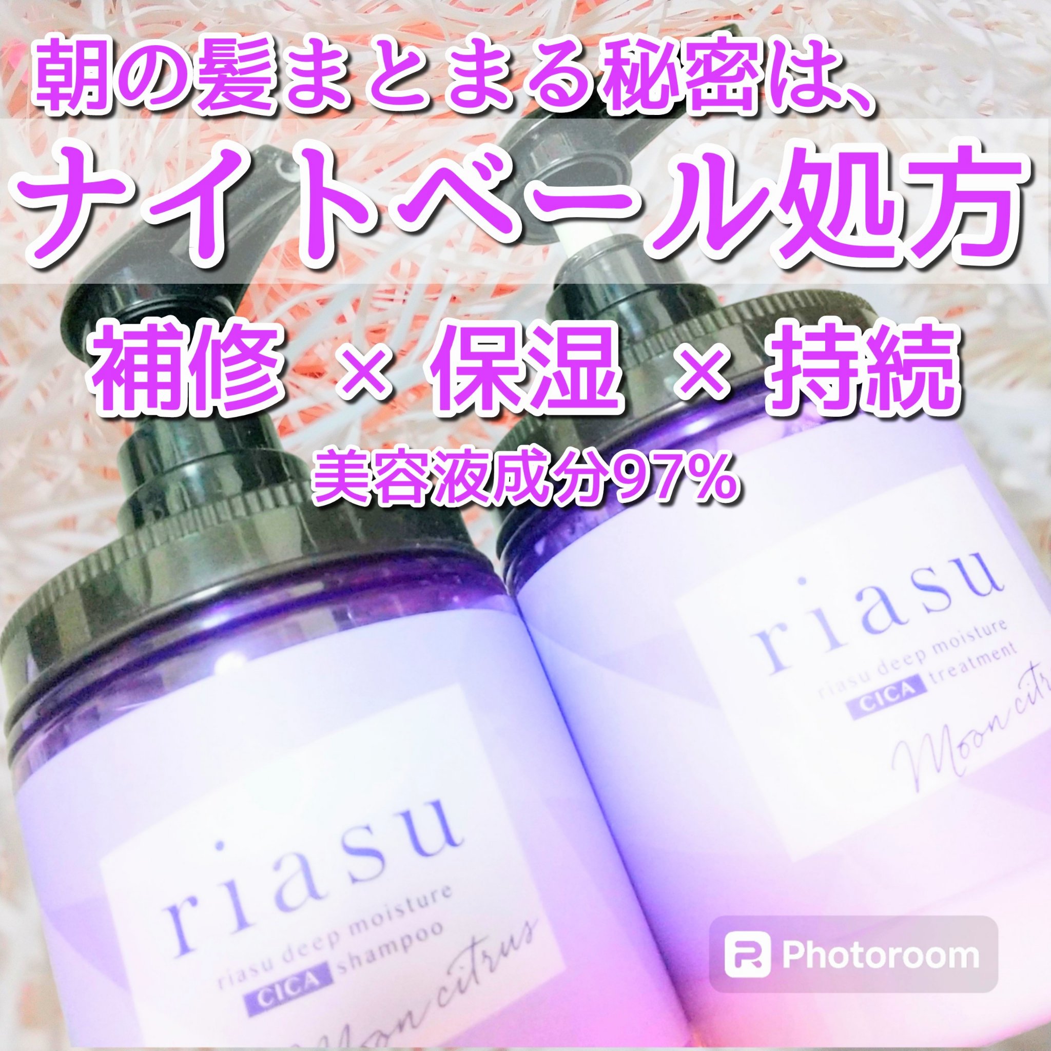 riasudeepmoistureCICAshampoo/treatment プレゼントキャンペーンで提供頂きました。ムーンシトラスの香りはラベンダー、ティーツリーなど安らかで上品な香りがいい🌙𖤐⡱泡立ちもよく、きしまず洗えるよ!翌朝起きた...