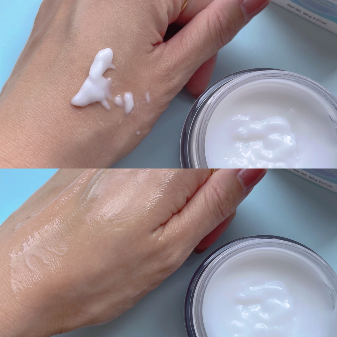 ビタミンE・ナイアシンアミド・アデノシンなど 明るく透明感のある若々しい肌へ。 杏仁豆腐みたいなテクスチャーも面白い。乾燥が気になる日にはたっぷり塗ってプルプル肌に。 ほんのりラベンダーのような香り。ビタミンチャージセラムとセット使いでさらにサポートしてくれるそう^ ^