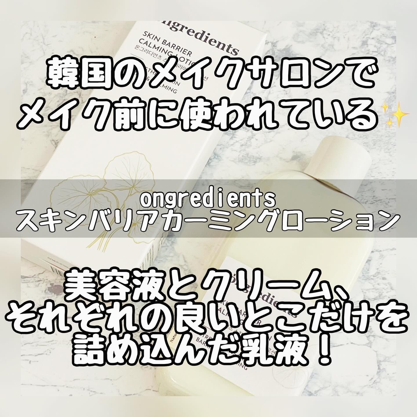 ♡OngredientsSkinBarrierCalmingLotion@ongredientsjp さまのメイクのりが良くなるローションです🩷韓国のメイクサロンでメイク前のスキンケアに採用された実力派乳液らしくSNSでもメイク前に塗ればツヤ...