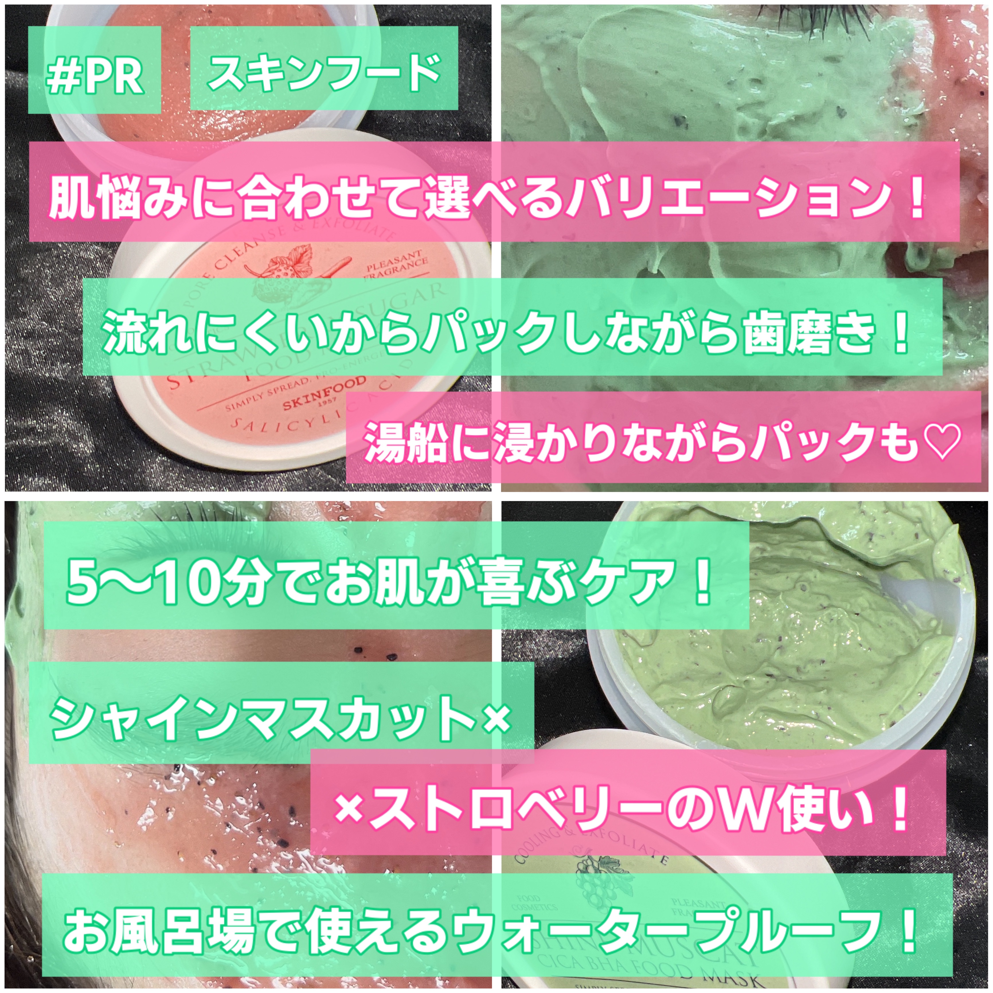 #PR肌悩み別に選べるスキンフードのシュガーマスクパック🤍週1~2回の使用でOK!顔にも体にも使えて、シャワータイムがご褒美ケアに🫧パケが可愛くて良い香りだから使うたびにテンションあがるし、ギフトにもぴったりだよ🎁💖3種類の詳細レポ↓🍓ストロ...