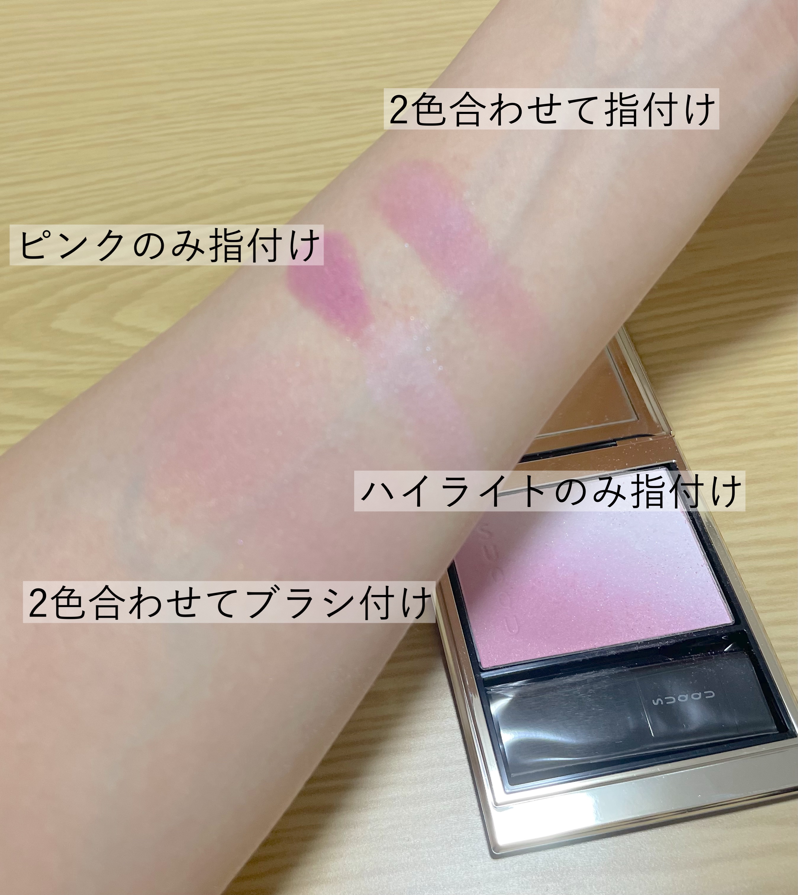 実際使うと、想像以上に可愛くて、テンション上がりました🤭 かなり青みピンクに感じますが、発色は淡く、肌に馴染んで儚げで、可愛い印象に🫧 一見難しそうなチークでしたが、使ってみると人気なのも納得☺️