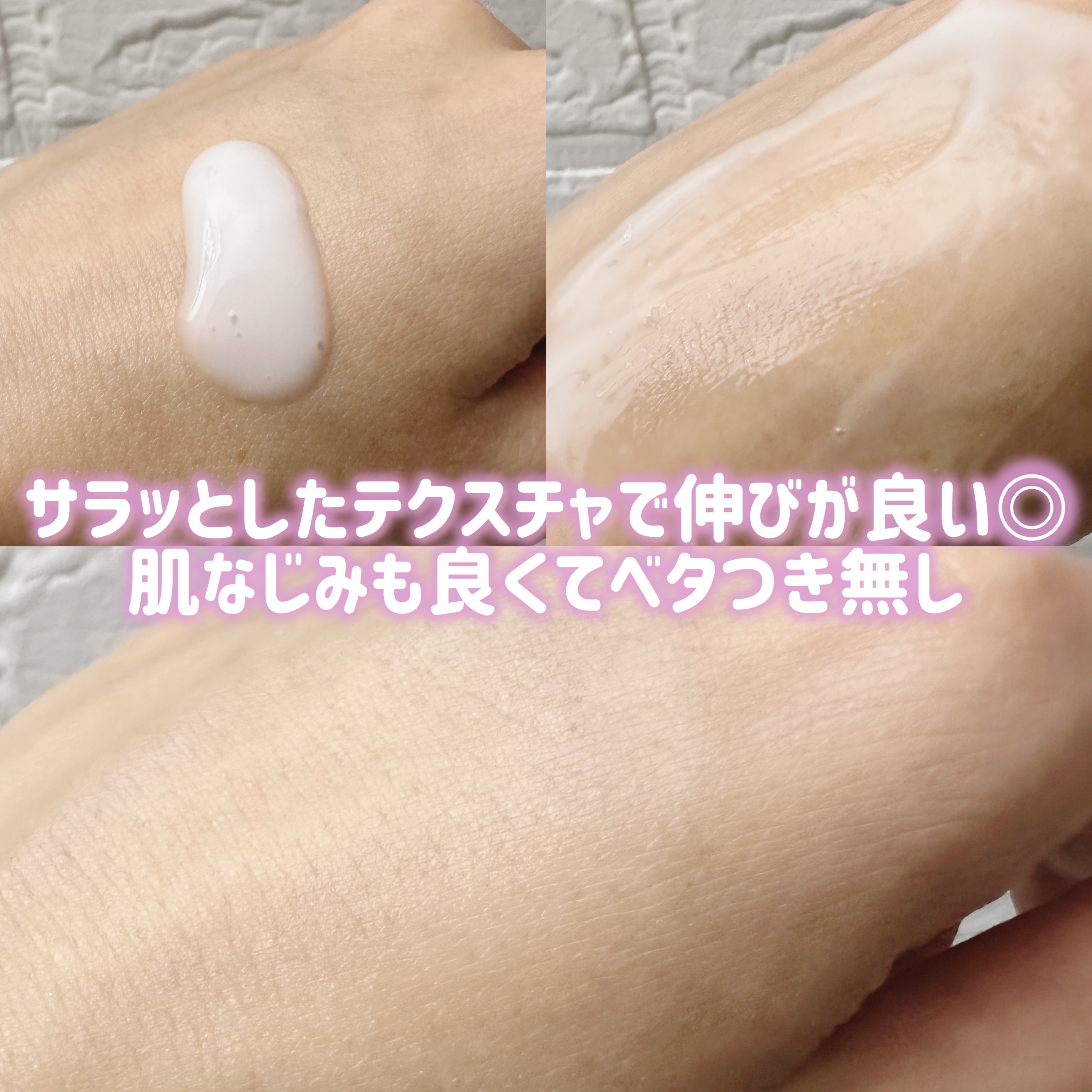 | テクスチャーは乳液のような水分たっぷり✨ 伸びが良くすーっと馴染み ベタつきがなくしっとりするので 軽い使い心地で使いやすいです🙌 | 詳細を見る | |