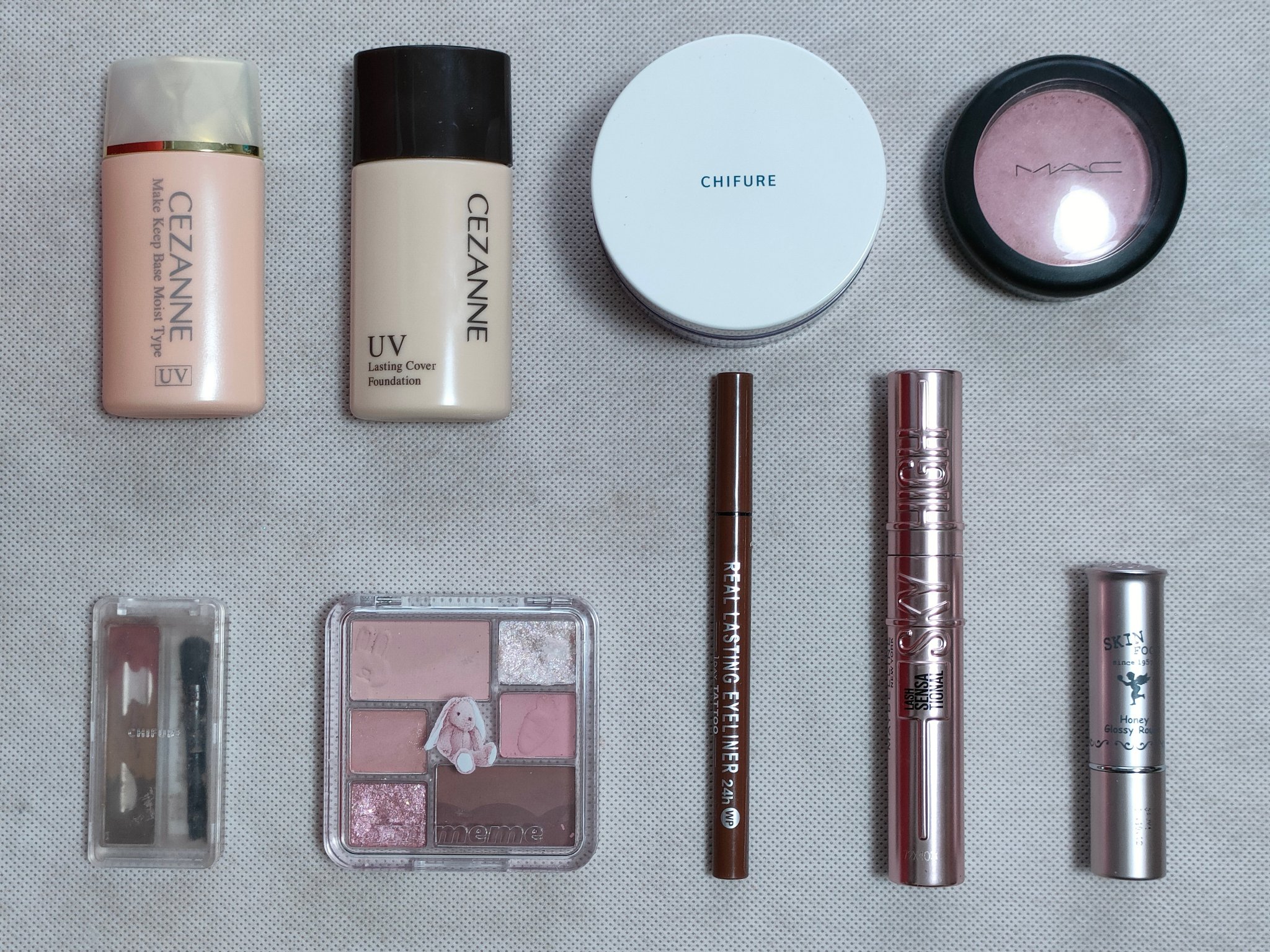 アリィー ニュアンスチェンジUV ジェル RSを、顔全体にまんべんなく塗ります。 RMK RMK ジェルクリーミィファンデーション 103を、顔全体にまんべんなく塗ります。 ジョンソンベビー ジョンソン ベビーパウダーを、顔全体にまんべんなく軽くはたきます。 THE BODY SHOP bronze shade warm glowを、両頬に塗ります。 KATE リフレクトミラーアイズ BR-1の締め色を、眉毛全体にまんべんなく塗ります。 URGLAM UR GLAMBLOOMING EYE COLOR PALETTE 01を、使用しました。 ちふれ リキッド アイライナー 筆ペンタイプ BK30 ブラックを、塗ります。 CEZANNE エアリーカールマスカラを、まつ毛全体にまんべんなく塗ります。 MAYBELLINE NEW YORK コロッサルボリュームエクスプレスを、まつ毛全体にまんべんなく塗ります。 MAYBELLINE NEW YORK SPステイ マットインク 135を、唇全体にまんべんなく塗ります。