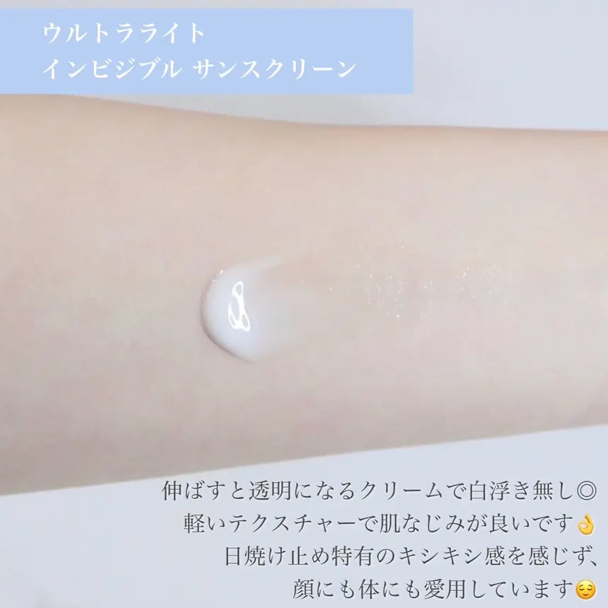 ウルトラライトという名前がついている通り、テクスチャーは軽く、みずみずしくてよく伸びます✨️白浮きもせず、あと肌サラッサラ✨️香りもほぼないから、日焼け止めが苦手な方や男性にも良さそう🩵残念なことがひとつあって、お化粧によってモロモロが出てし...
