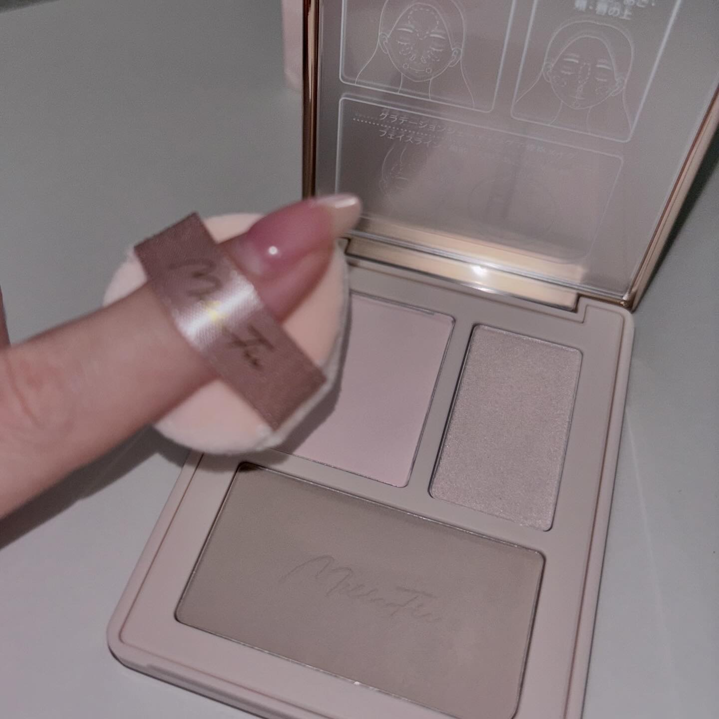 Timageは本当に粉質が良いシェーディングパレット! 今まで使ってた別のパレットは、マットハイライトが崩れやすかったんだけど、Timageは毛穴や乾燥が目立ちにくい👏パフを使うと綺麗に仕上がります! このパレットは全体的に発色が良くて、ハイライトはしっかり光る系💪 しっかりメリハリつけたい人におすすめです!
