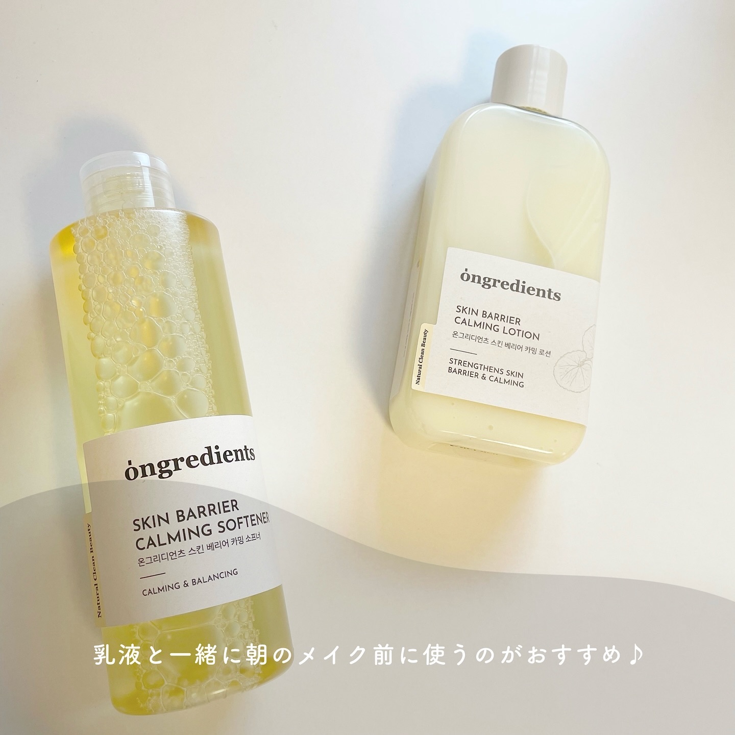 バリアケアしながらツヤ肌へ🌟 Ongredients スキンバリアカーミングソフナー🌱𓂃 𓈒𓏸 使いやすいシンプルなボトルでサラトロテクスチャーでみずみずしい✨️ 香りもやさしくて癒される✨️ ライン使いできるのが嬉しい〜❣️