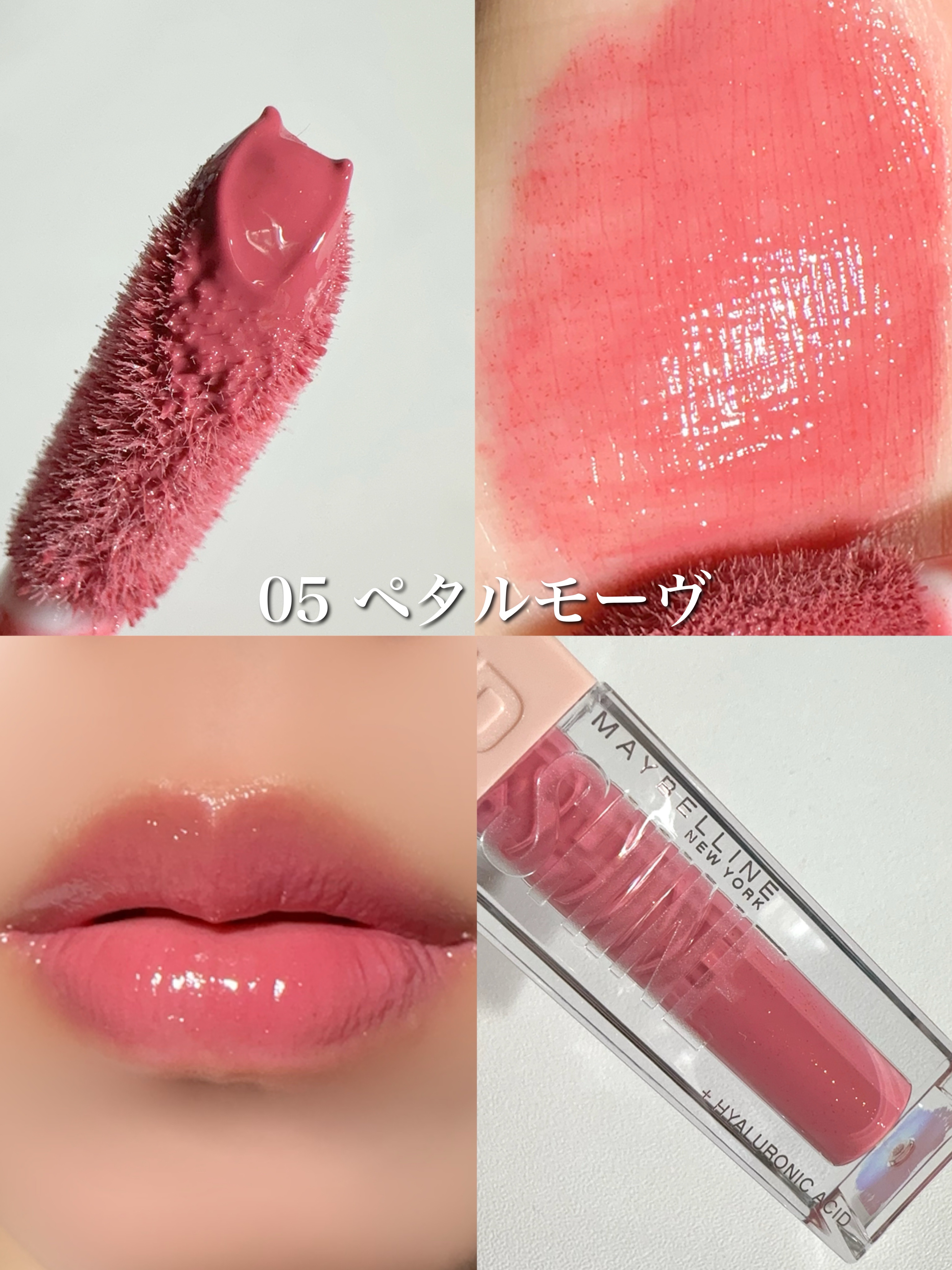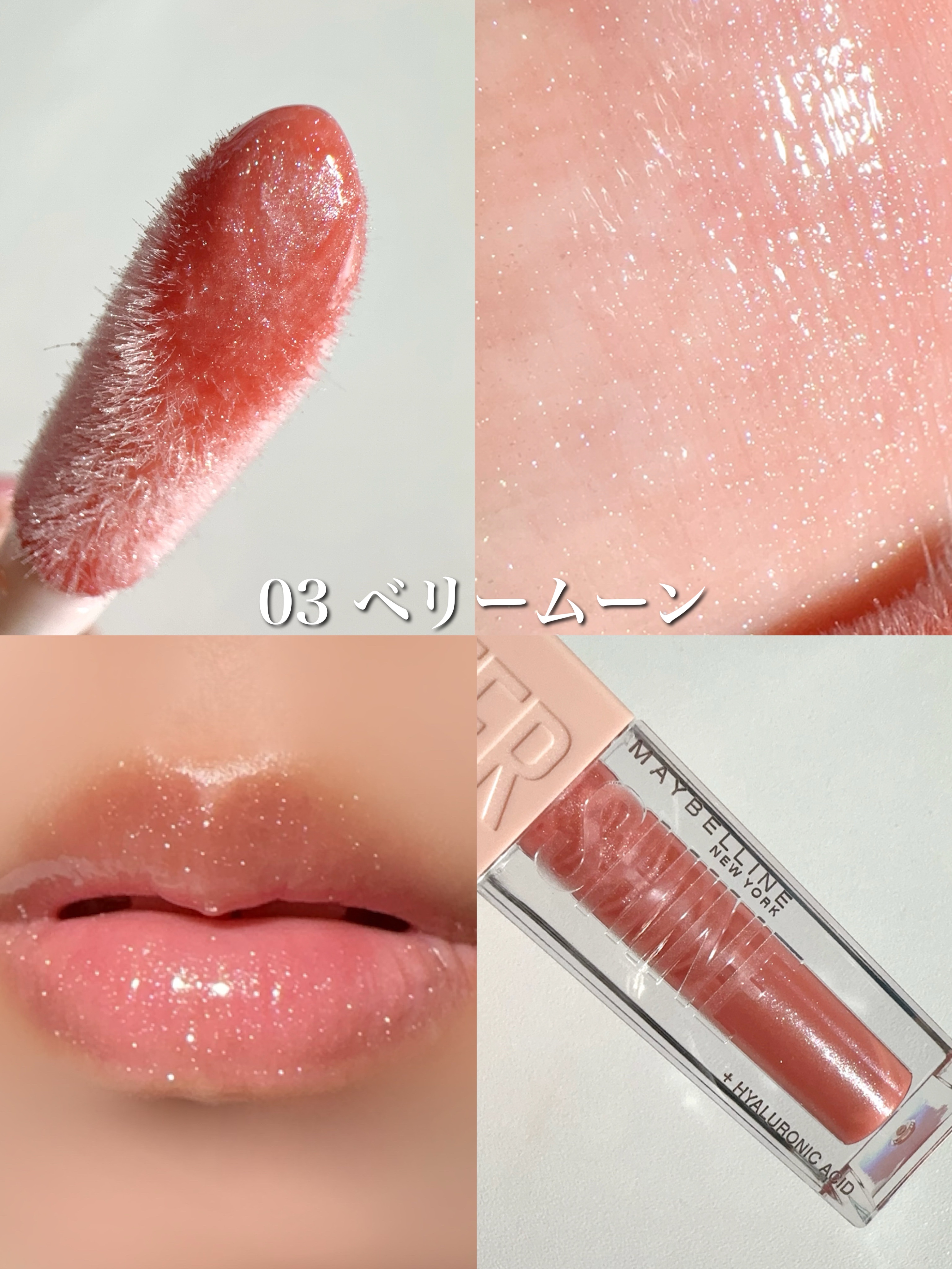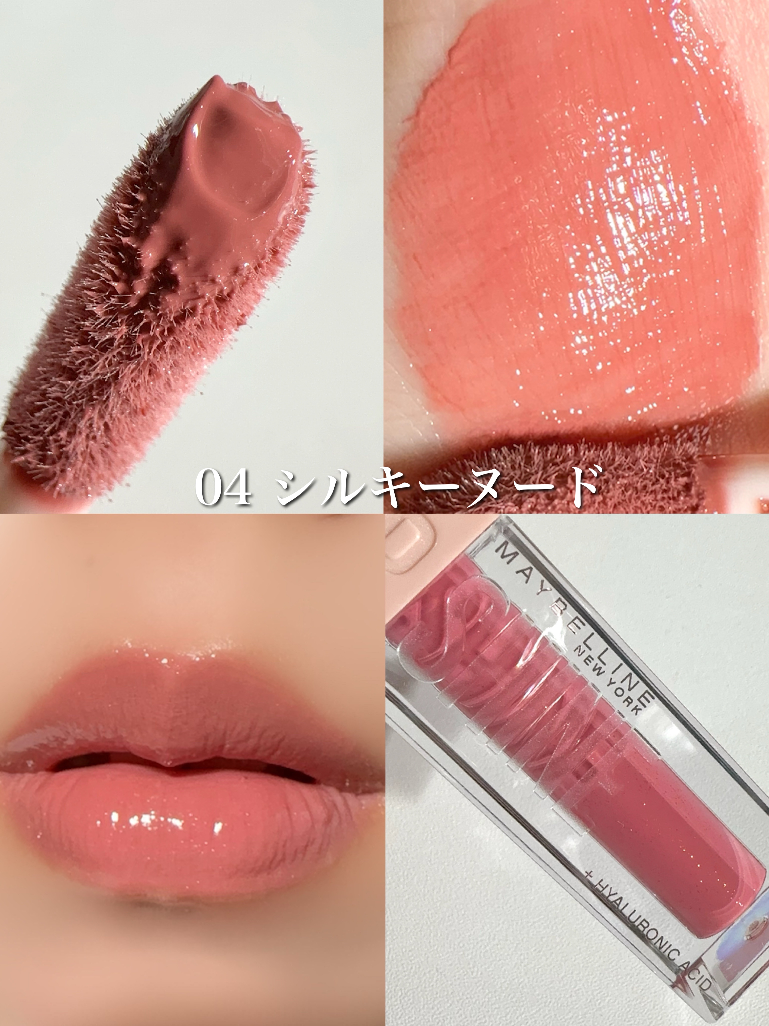ねっちょりボリューム感あるテクスチャーだけど、ベタつきなく使いやすい。 ティントじゃない普通のグロスだから色もちは良くない。 発色ナチュラルだからこれだけでもいいけど、他のリップと合わせても可愛い!!
