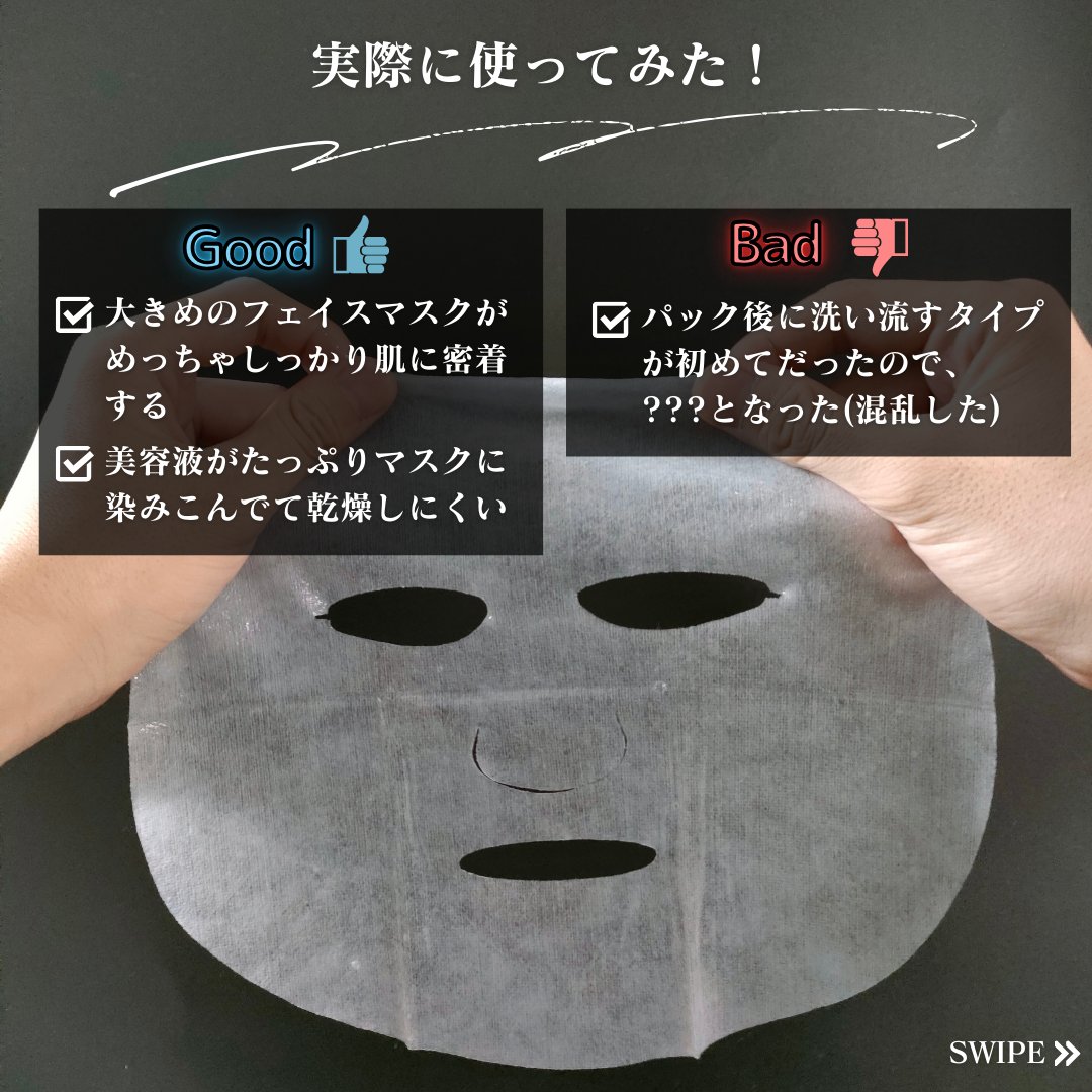 | スキンケアランキング第141位 | 袋を開けた瞬間から美容液がたっぷりで贅沢感 シートは薄めなのに破れにくく、顔全体にピタッと密着。液だれしにくいのでながらケアにも◎ | 詳細を見る | |