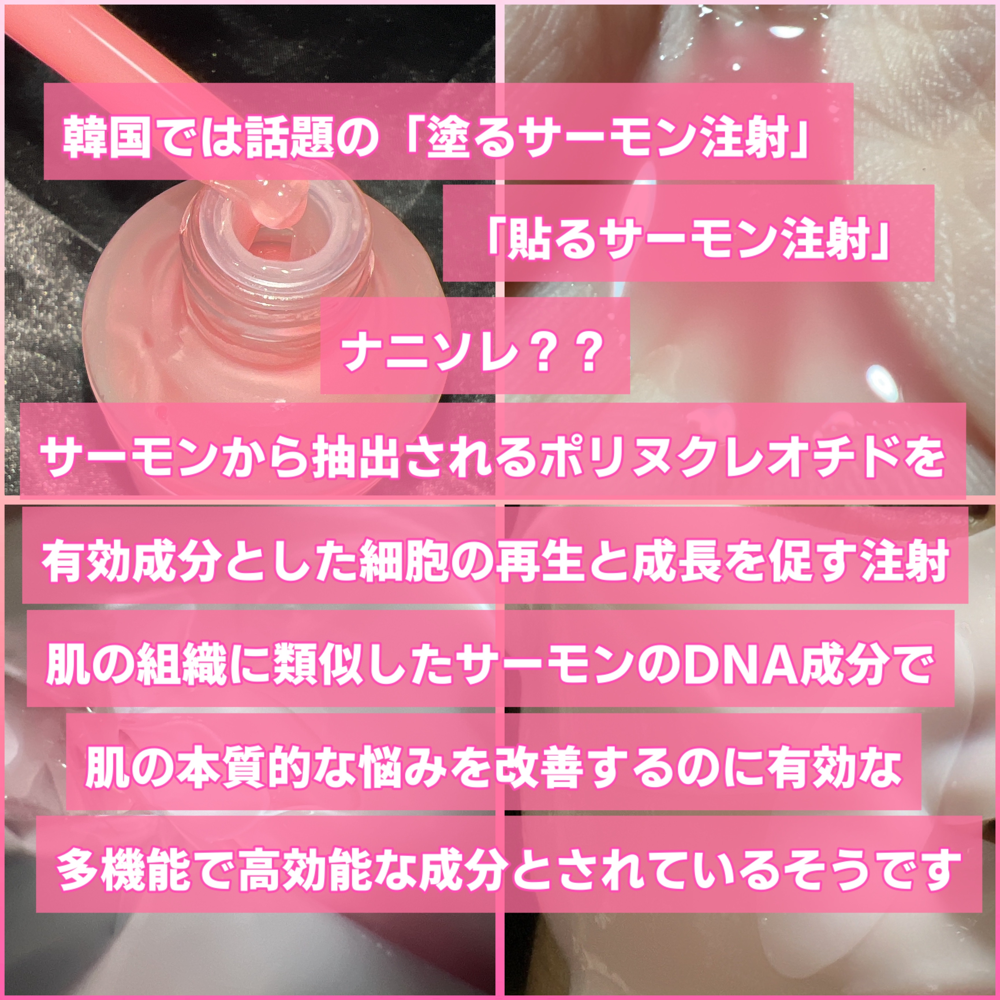 高級原料が2000円入っているらしい! 価格バグだわw 塗るサーモン注射! お家でも高級エステ級なケアができちゃう! 肌組織に類似したサーモンDNA成分のコラーゲンPDRN 10,000ppm配合* *整肌.保湿成分