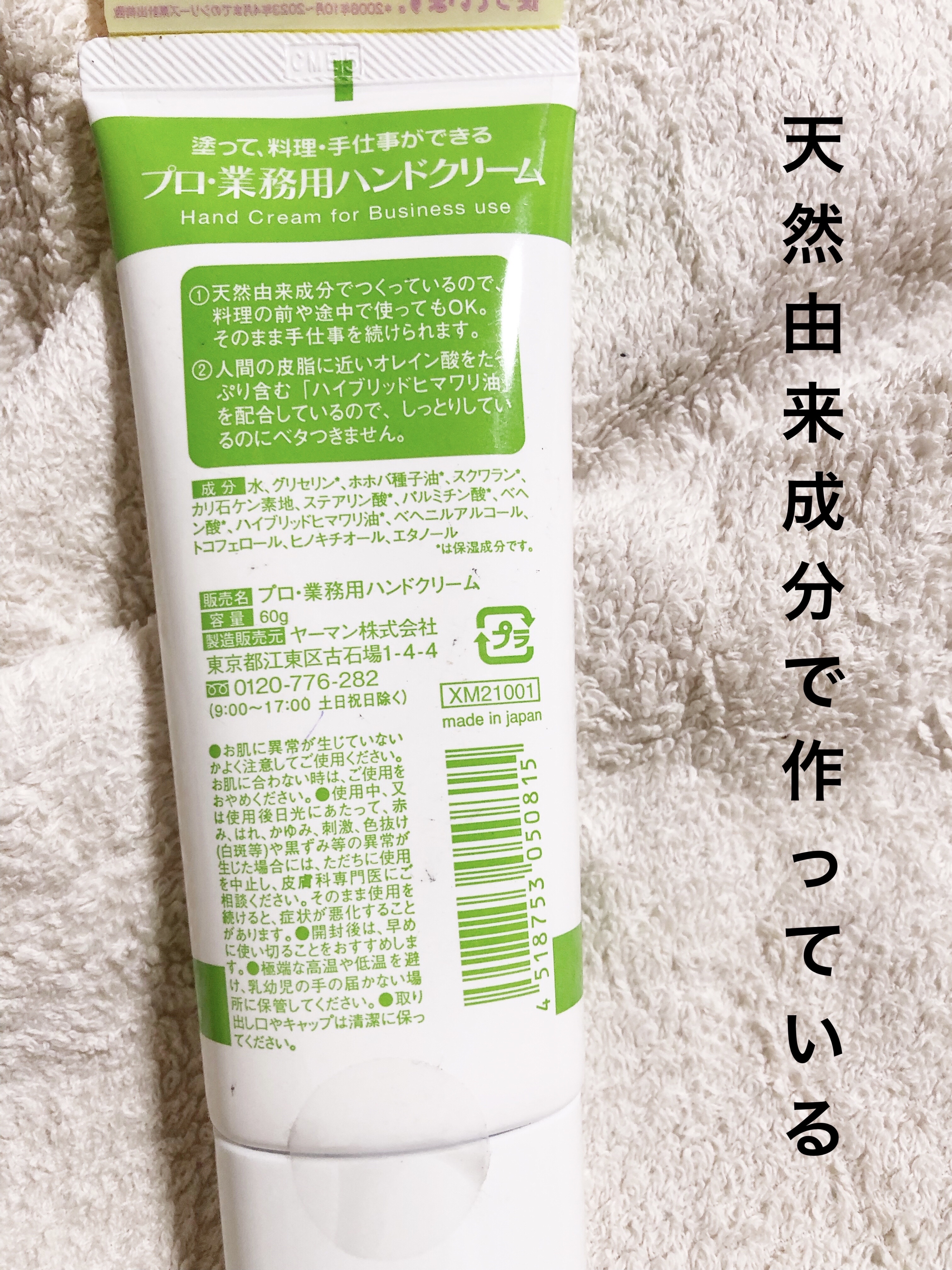 プロが使うハンドクリーム!しっとりと手を保護するのに全くベタつかないから塗っていても料理や手仕事ができちゃう! 私が1番いいなと思った点は、これを塗っていても指がヌルヌルしないから蓋が開けられたり、袋を開けられるところ! わたし、あかぎれ出来やすいからこれ、めっちゃ愛用すると思う!