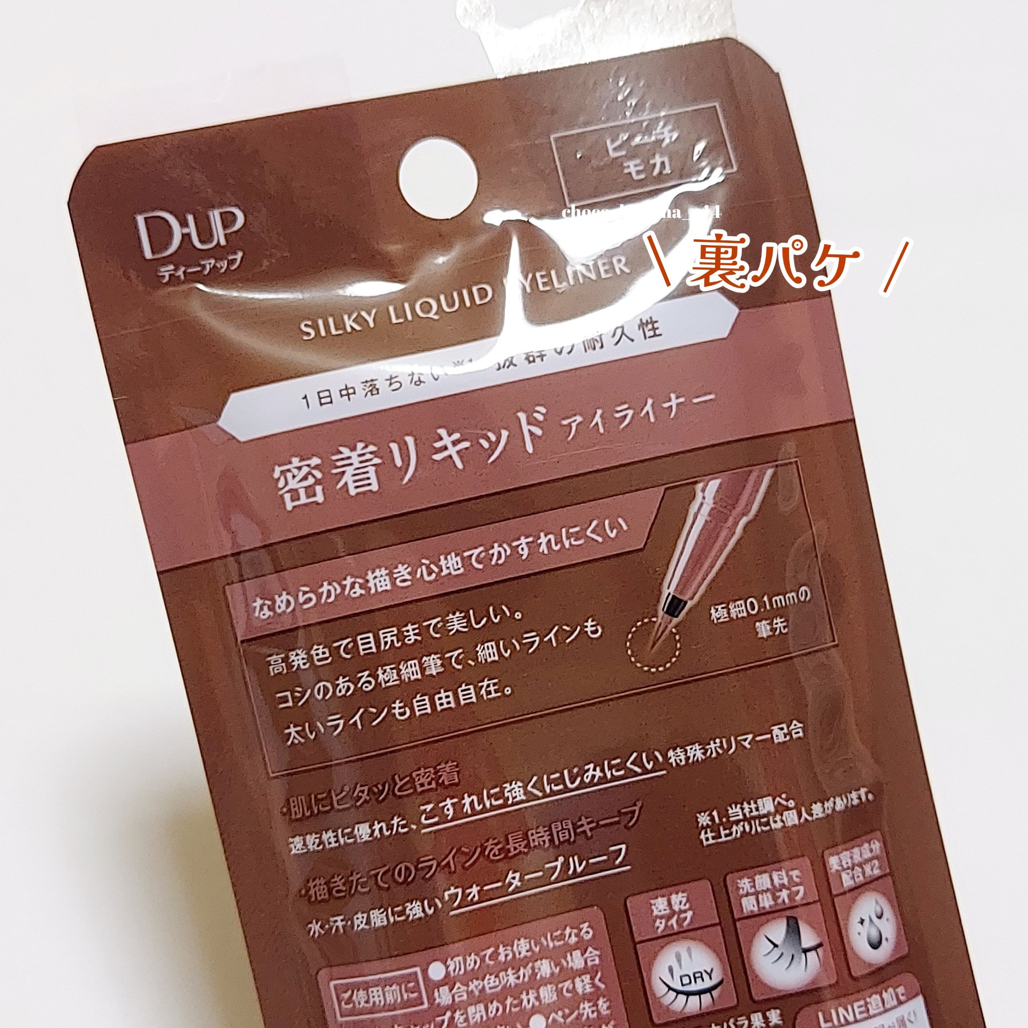新色!そしてディーアップ初のラメライナー! シルキーリキッドアイライナー スターダストブラウン 筆にコシがあり、リキッドアイライナーの中ではアイラインが描きやすいです 速乾性に優れた、こすれに強くにじみにくい特殊ポリマー配合
