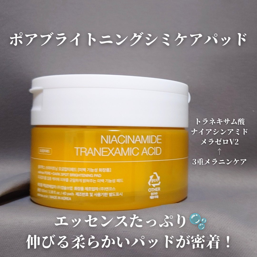 シミやくすみを根本からケア❇️ 韓国で200万個以上販売された「消しゴムパッド」やOliveYoungのベストセラー・「ノニアンプル」でおなじみのセリマックスさん🤍 トラネキサム酸、ナイアシンアミドに加えてメラニンを分解・除去してくれると言われる特許成分・メラゼロV2が配合されていること☝️ みずみずしいジェル状のテクスチャー✨ 肌なじみがすごくよくて全然べたつかなくてサラッとした仕上りなの😉