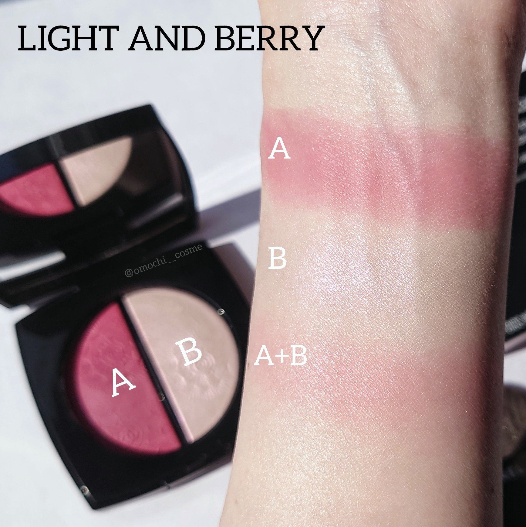 マットで鮮やかな発色のチークカラーと、パールがきらめくハイライターがひとつになった。 持ち運びに便利なコンパクトで、日中のメイク直しにぴったり。 チークは指にとると濃い色味に感じましたが、手にぼかすとほんのりした血色感ある色味に感じたので頬にもブラシでふわっとのせれば上品な大人ベリーピンクに仕上がりそう。