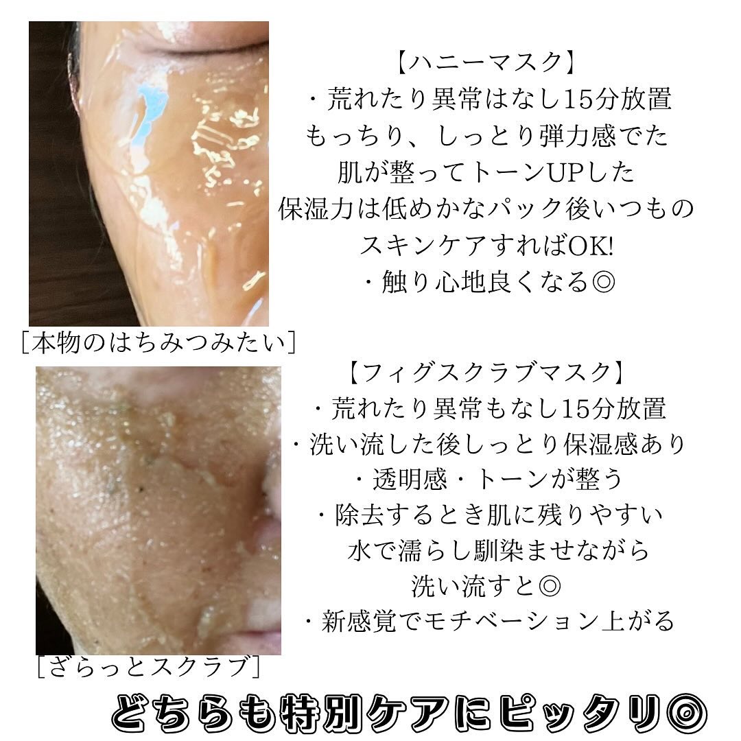 オリーブヤングフェイシャルパック部門一位の人気ハニーマスク。チリ産の蜂蜜をたっぷり使用した48時間保湿してくれるハニーマスク。 敏感肌にも優しいマスクで、ハニーマスクとフィグスクラブマスクを混ぜて使用すれば保湿と角質ケアを楽しめる!! しっとりなめらかテクスチャーでやさしく肌を包み込んでくれます!保湿力も冬なのに乾燥知らずで素晴らしい!