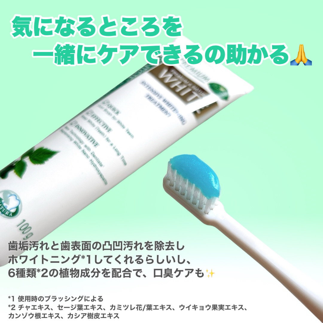 - 歯の細かい汚れやヤニ、黄ばみを落として歯を白くする(※)ホワイトニングハミガキです。 また、口内のネバツキを除去し、口臭もケア。 さっぱりとした使用感で、ホワイトニング(※)と口臭をダブルでケアできます。 ※使用時のブラッシングによる