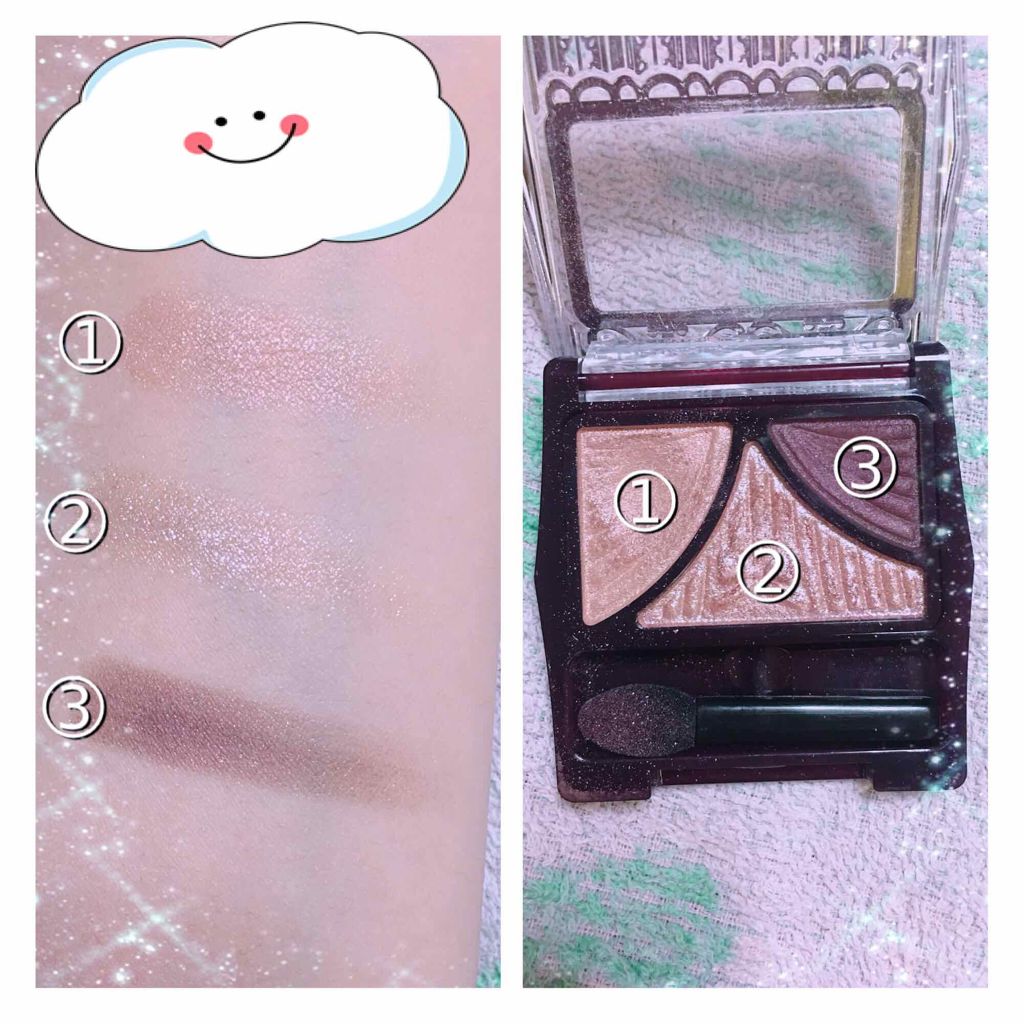 - パウダーなのにみずみずしい♥ 自然な立体感をつくりだす3色アイシャドウパレット 仕上げのコートで、ジューシー感&モチUP! メインカラー&ラインカラーはフィッティングオイル配合のしっとりパウダーで、 まぶたに吸いつくように溶け込み、ジューシーコートスフレで覆うことによって、 濡れたようにツヤめく愛されまぶたで透明感のある目元を演出します。