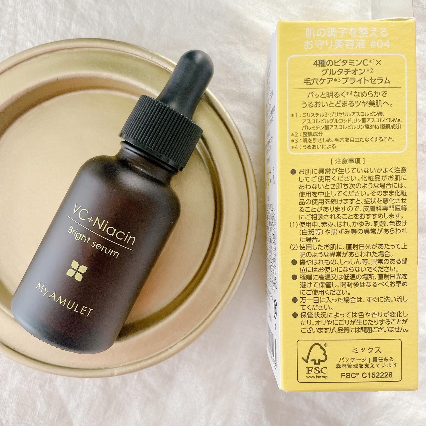 高機能ビタミンC誘導体のポアショット®を配合した、マイアミュレットの導入美容液。 なめらかな肌へサポートしてくれるんだって♡ テクスチャーはさらっとしていて、スーッとなじみの良い使い心地。