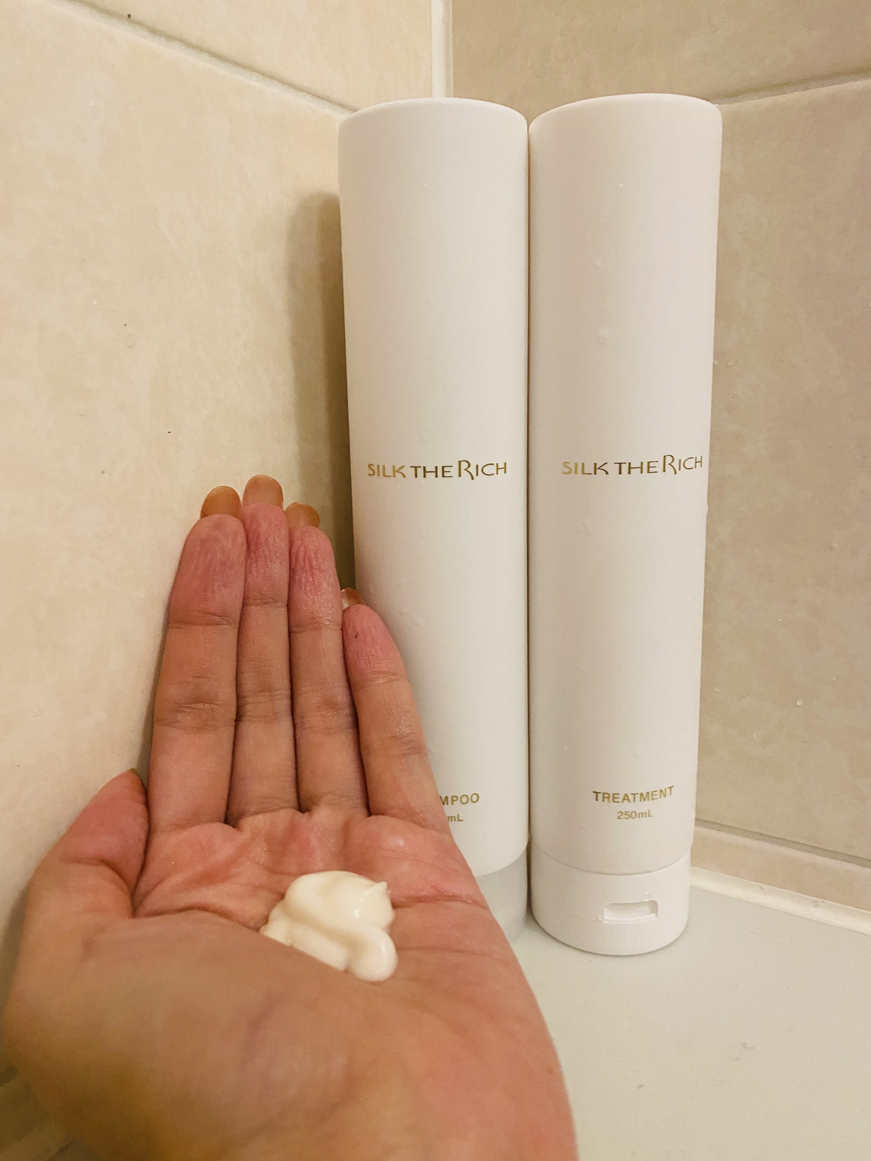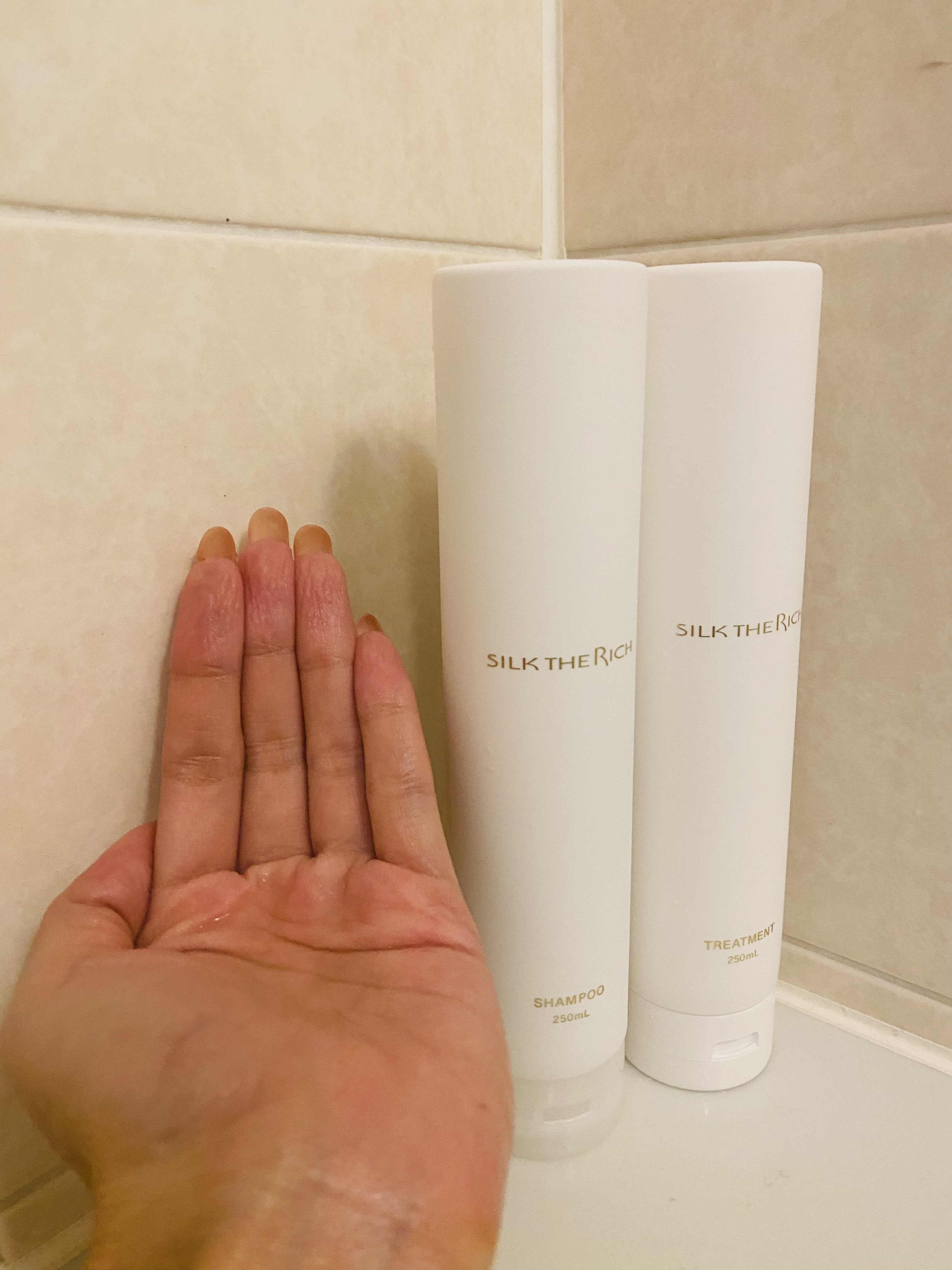 SILKTHERICHモイスト&リペアシャンプー・トリートメントシャンプーはかなりとろみのあるテクスチャーです。少量だと泡立つまでに時間がかかるので、少し多めに出して使用しています。洗い流していると、指通りが良いのが分かります。流し終えた後、...