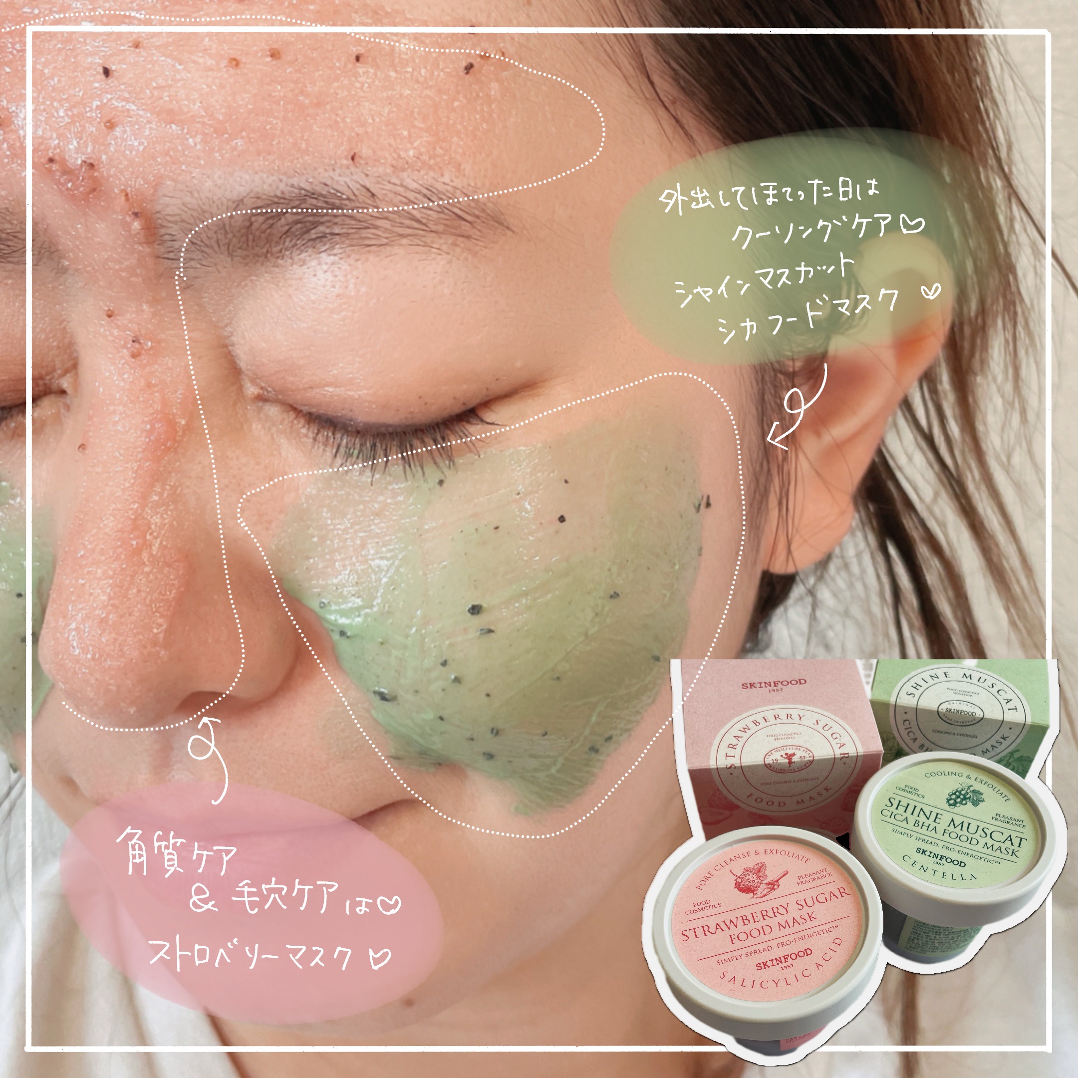 #PR肌悩み別に選べるスキンフードのシュガーマスクパック🤍週1~2回の使用でOK!顔にも体にも使えて、シャワータイムがご褒美ケアに🫧パケが可愛くて良い香りだから使うたびにテンションあがるし、ギフトにもぴったりだよ🎁💖3種類の詳細レポ↓🍓ストロ...