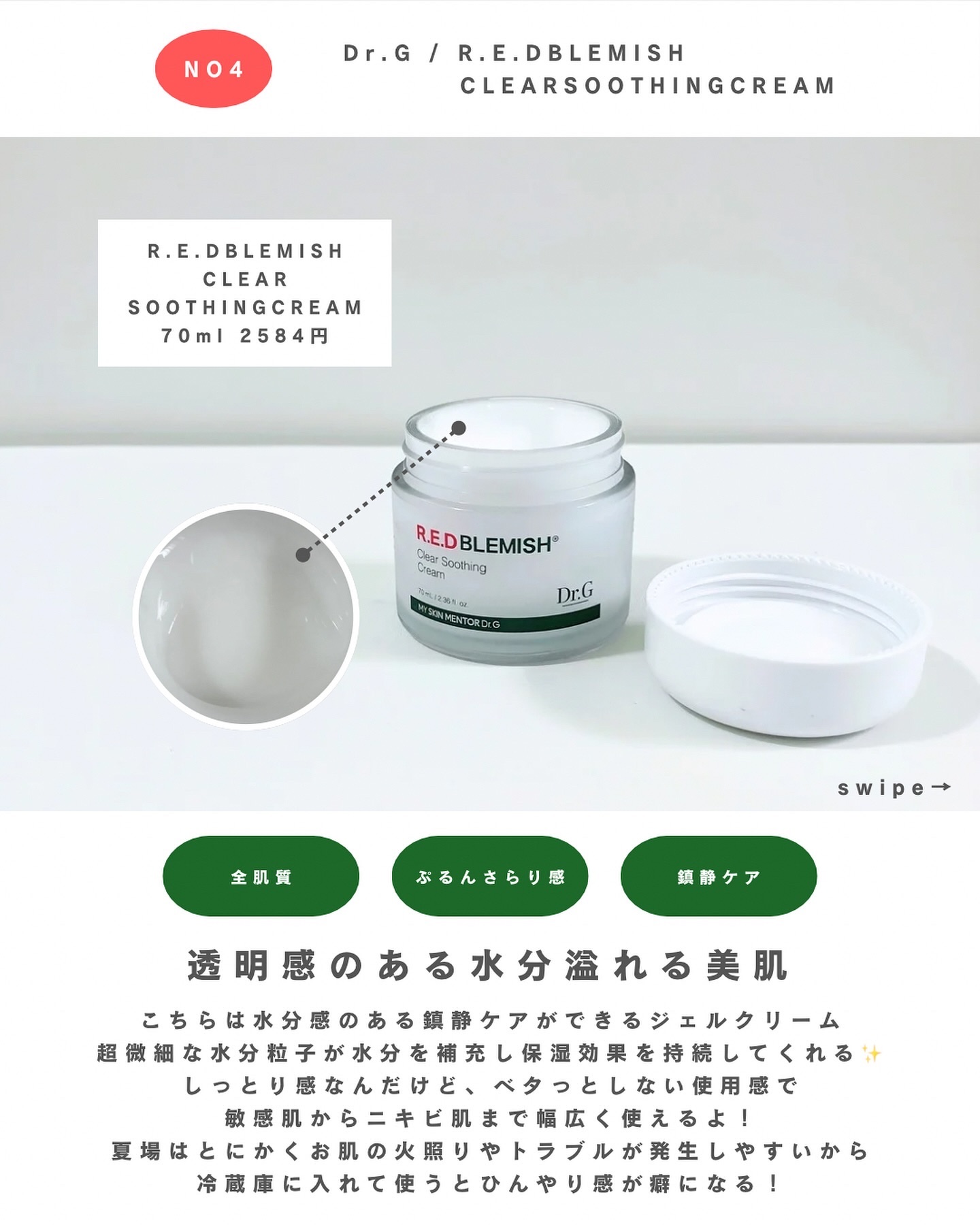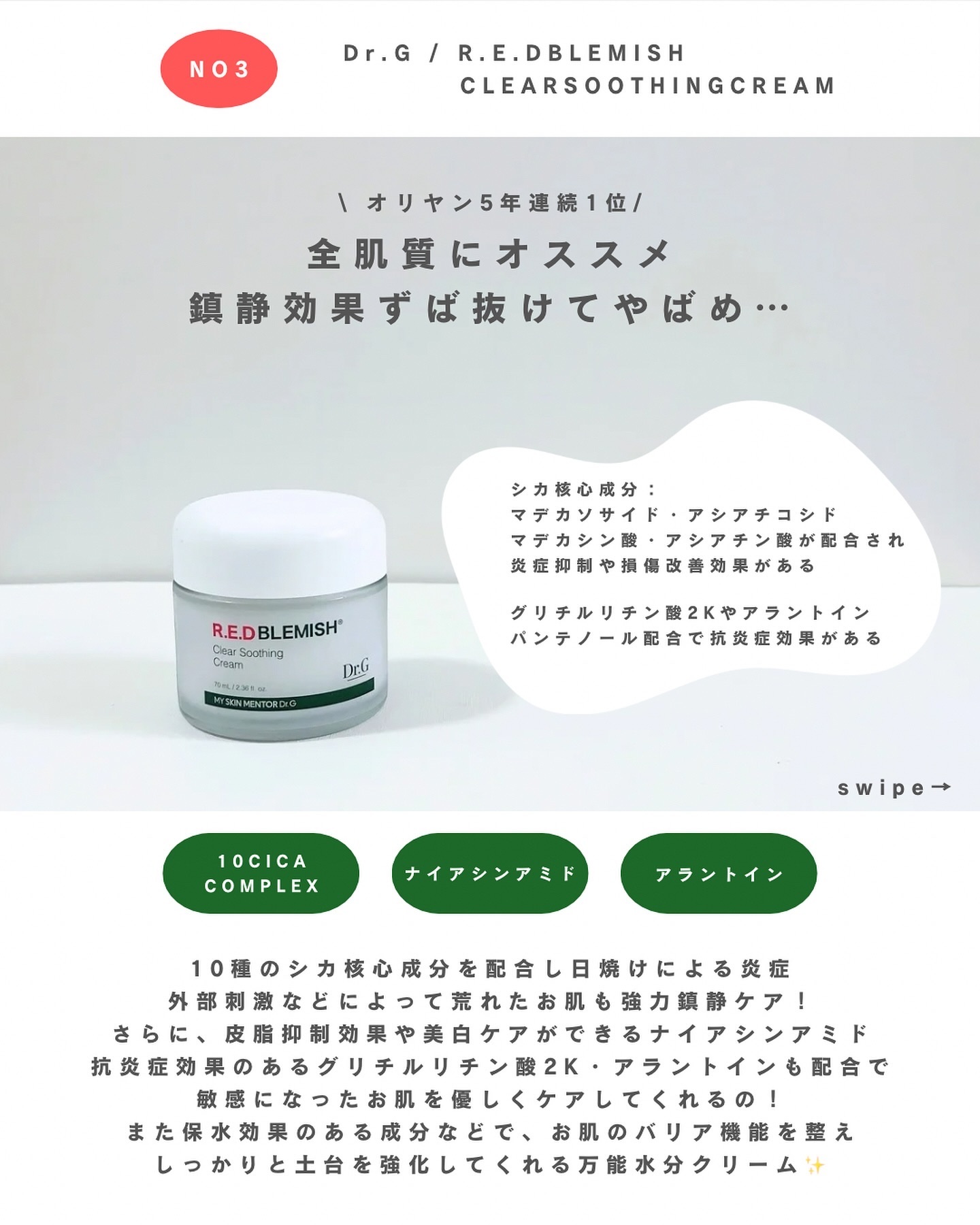 潤いたーっぷり! 赤みやニキビのケア、肌荒れのケアにぴったりな水分クリーム! 10種類のシカ成分を配合しているので、様々な環境による肌のトラブルを鎮静させてくれるよ。 ぷるっとした柔らかいクリームで肌にすっとなじんでくれるよ!とってもみずみずしい使用感がお気に入り✨