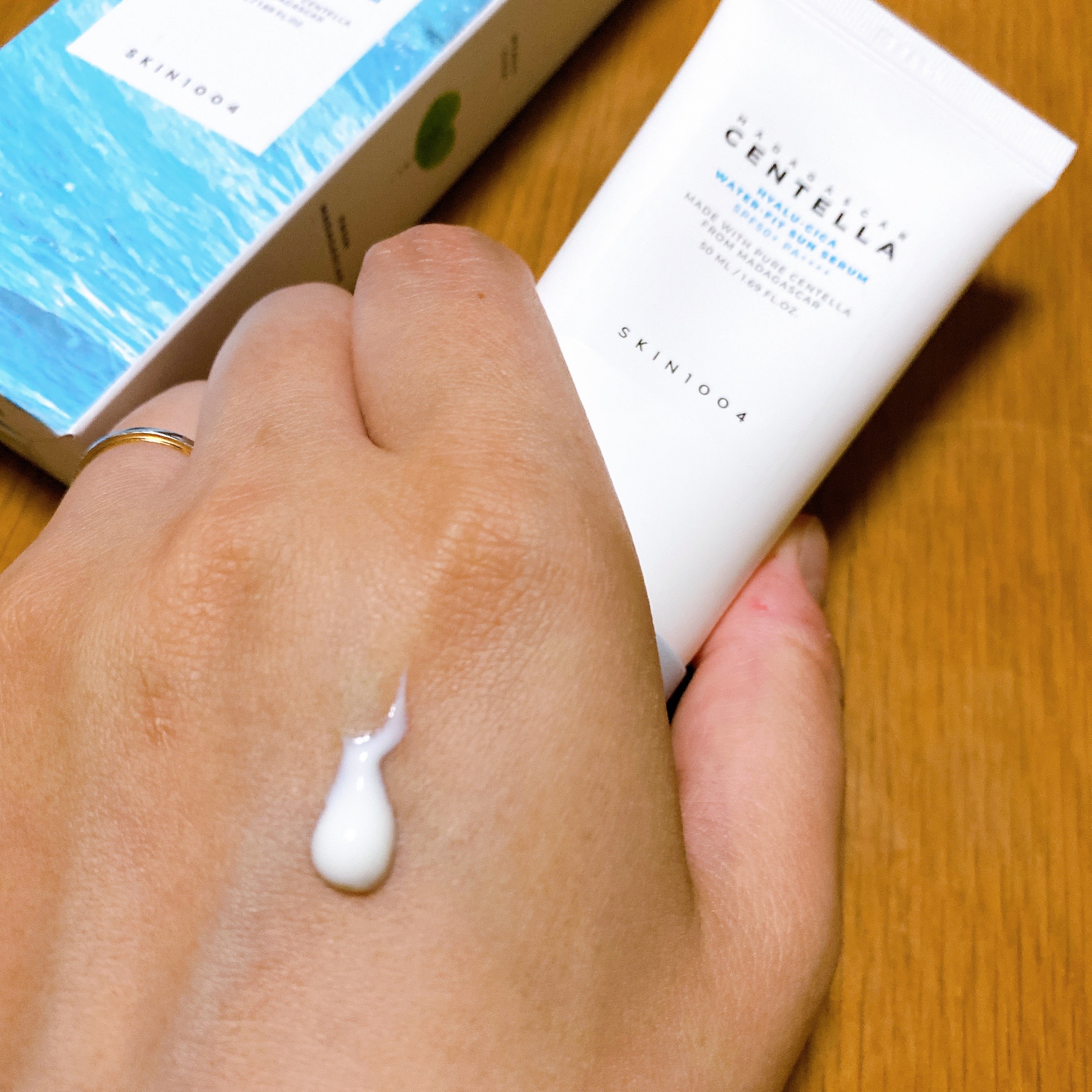 水分クリームのような潤いたっぷりの日焼け止めです。テクスチャーはみずみずしく、お肌にスル〜っと伸びます。 保湿力があるのにベタつかないのが嬉しい🥹夏でも使いやすそうです💭 日焼け止め特有の香りとキシキシ感がないのがとても良い!!