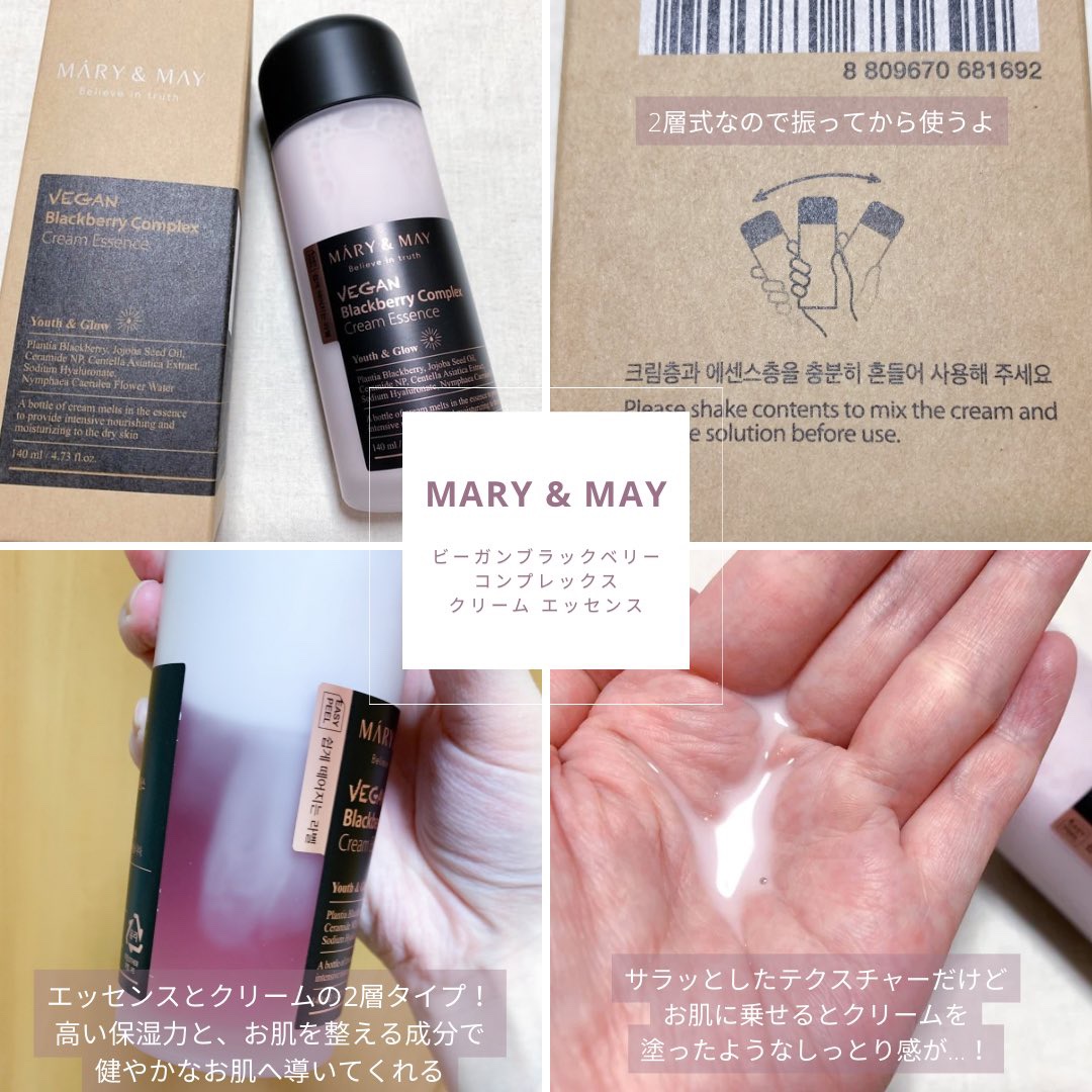 サラッとした軽めのテクスチャながらクリーム1本分の豊富な栄養が含まれたオールインワンエッセンス🥰 高粘度のクリームがサラサラのエッセンスに溶け合うことで、お肌の水分と油分のバランスを整える絶妙なブレンドになります🍀 整肌成分セイヨウヤブイチゴ(ブラックベリー)果実エキス、ニンフェアケルレア花水、ツボクサエキスと保湿成分ホホバ種子油、セラミドNPを配合した処方がお肌を整え潤いでバリア機能を発揮します💞