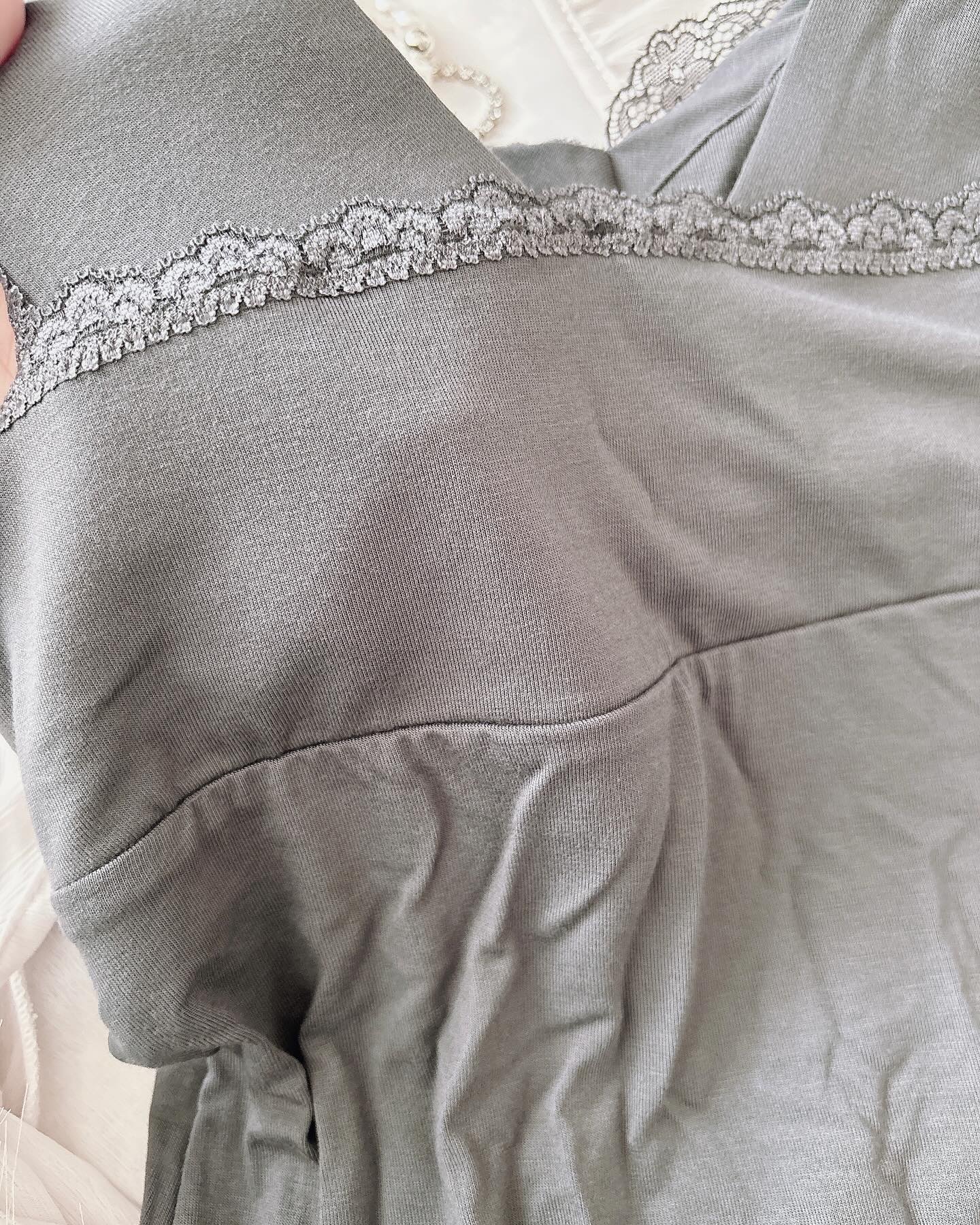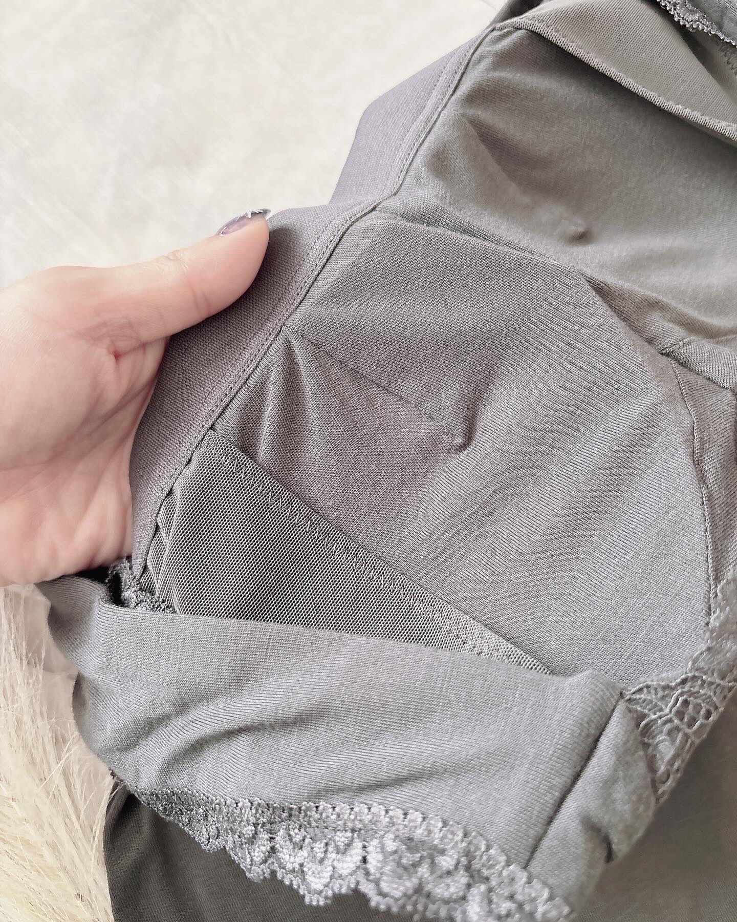 ナイトブラとルームウェア一体型だとこれ1枚でOKなのでうれしいよね✨ 快適でソフトな付け心地にこだわっておりノンワイヤーなのにホールド力が高くバストの横流れを防止してくれるの👌 上品なデザインと肩紐太めなタイプで、胸元高め、谷間が見えにくい仕様になっています⭕️