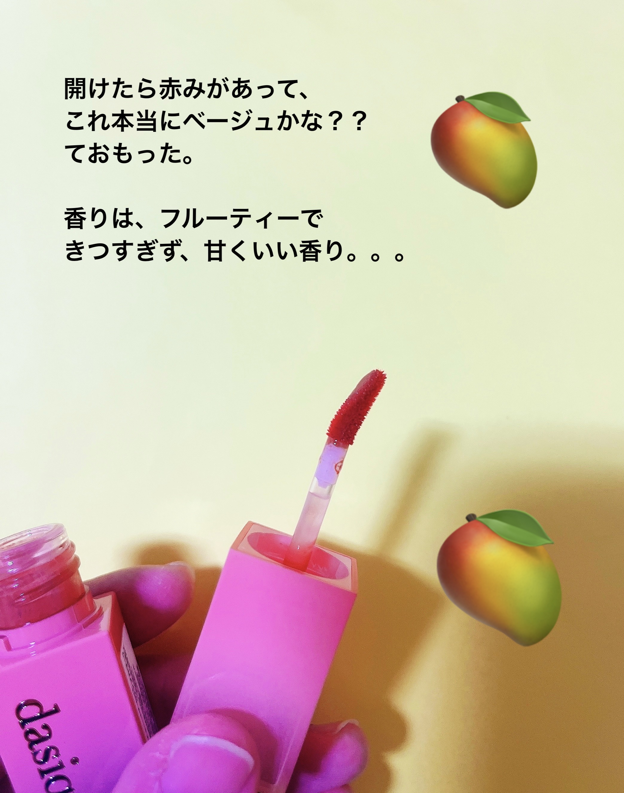 dasiqueティントの持ってる色をご紹介!▪︎dasique▫︎ジューシーデュイティント▫︎¥1,650※桃味のグミや飴の香り。結構強め!手持ちの4色についてご紹介します☻公式画像の色味との違いを感じたので特にそのあたりに触れていきます!結...