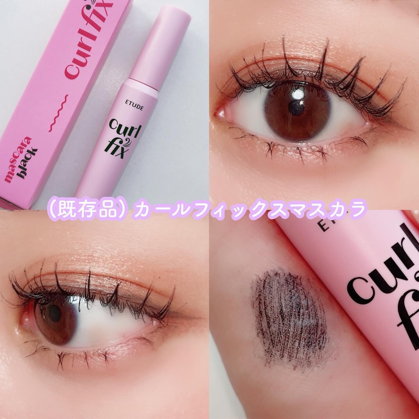 #エチュード の人気マスカラからボリュームタイプ登場🖤 既存のカールフィックスマスカラのブラシより細めで、四角にカッティングされ、目の曲線に沿ってカーブしたスクエアフィットブラシが特徴。 くっきりとしたクリアブラックで印象的なまつ毛を演出 細めのブラシなので、細かいことろにも使いやすくて、下まつ毛にも塗りやすいです。 まつ毛のカールを長時間キープしてくれる#マスカラ下地 カールキープ、ボリュームアップ、トップコートの1本3役👀