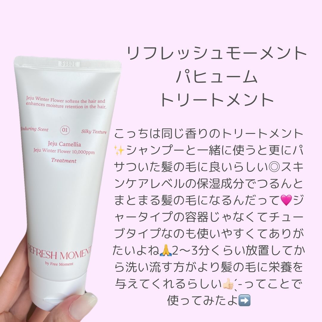 商品詳細情報Free Moment リフレッシュモーメントパフュームシャンプー/トリートメント Jeju Camellia