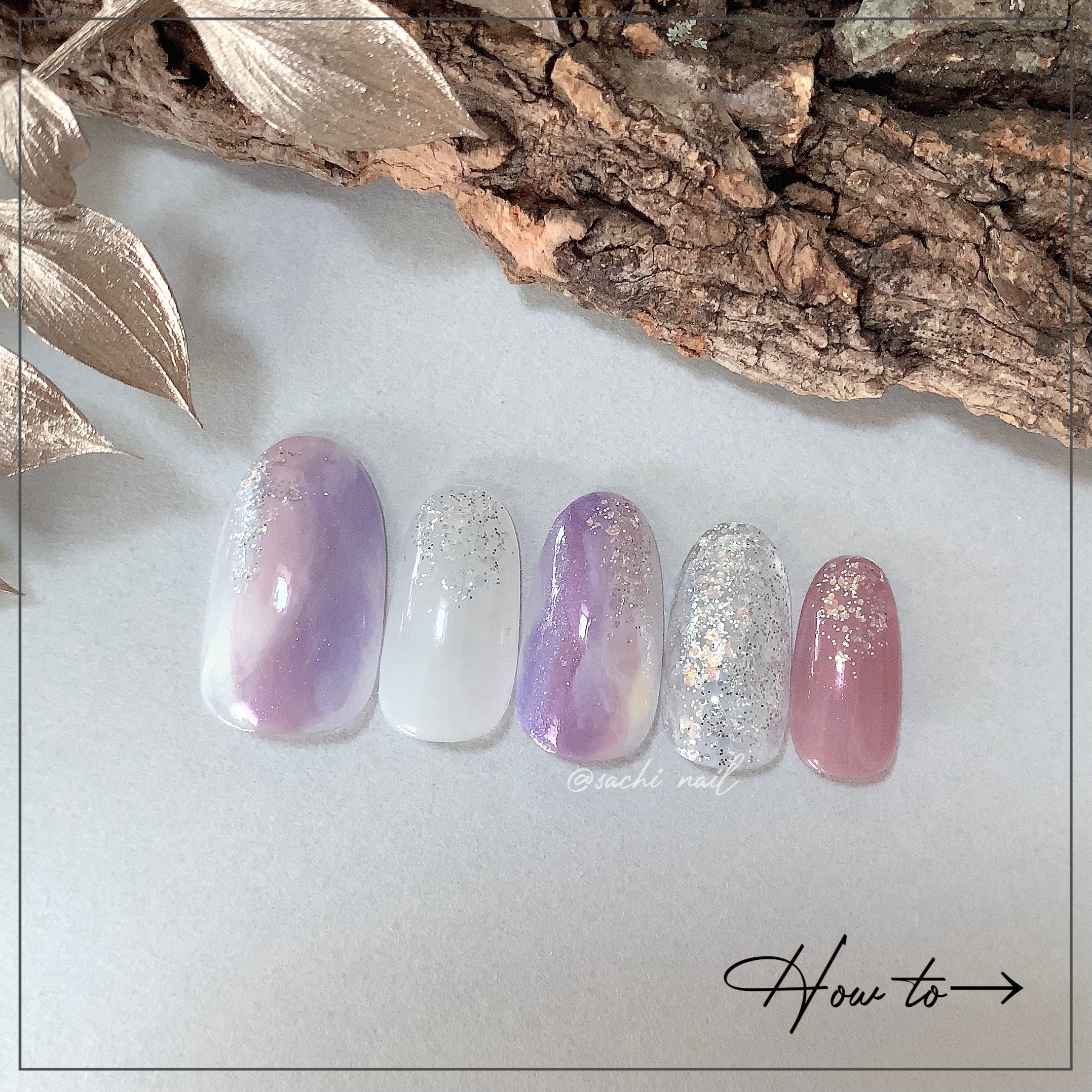 ワンカラーでも指ごとに色を変えるだけでオシャレに見えます💕 画像のようにゴールドラインとストーンを少し足すだけで華やかさがアップ🥰 何度かご紹介したことのあるスポンジで作るグラデーションです✨ スポンジを使うことで境目が綺麗に馴染んでくれます💕 アルミホイルの上でブラウンとトップコートを1:1くらいで混ぜたものを、トップコートのハケに取って3箇所に塗るだけ👌 事前に混ぜたものを塗ることで、爪の上でぼかすより簡単に出来ます💕 ベースカラーが乾く前に点置きしてぼかすことで綺麗にぼかせます✨ スピードが大事なので、使うポリッシュのキャップは全て開けておきましょう😊 天然石のラインはガタガタの方がより天然石っぽく見えるので、ラインを描くのが苦手な方でも大丈夫🙆♀️ 難しそうに見えて、やってみると意外と簡単に出来ます♡