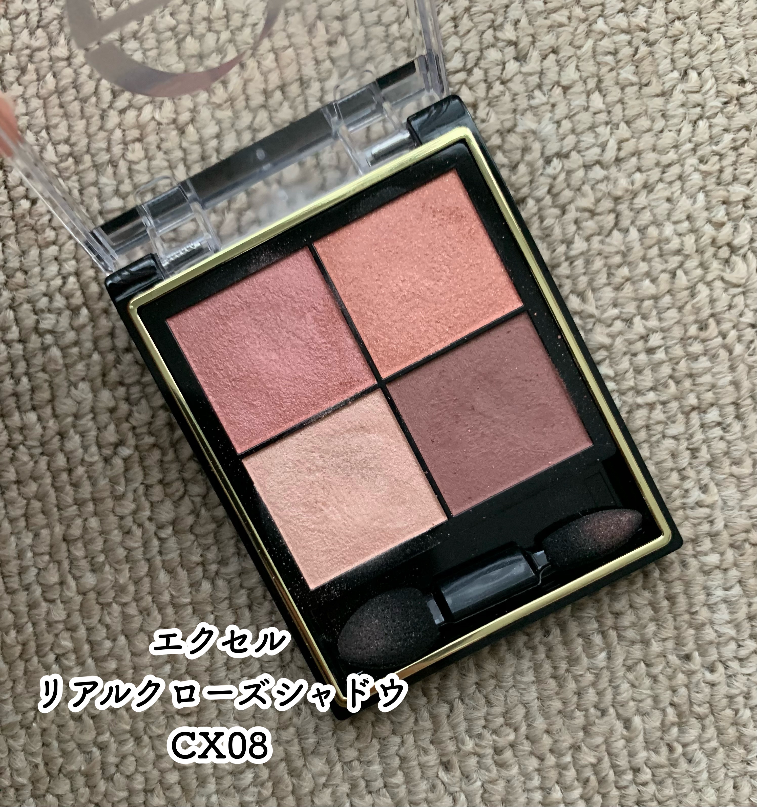 リアルクローズシャドウが可愛すぎて2色買いしてしまった話です💐 エクセルの定番シリーズ、粉がしっとりしていて色も可愛いのでたくさん持っています 特に右上のラメがタイプすぎる、、 左上のピンクも深みがあって秋冬にいいなあと思いました🌱 こちらは使いやすい一品💁♀️ ラメもザクザクではないし、落ち着いた色味なので、オフィスメイクにも使えそうです