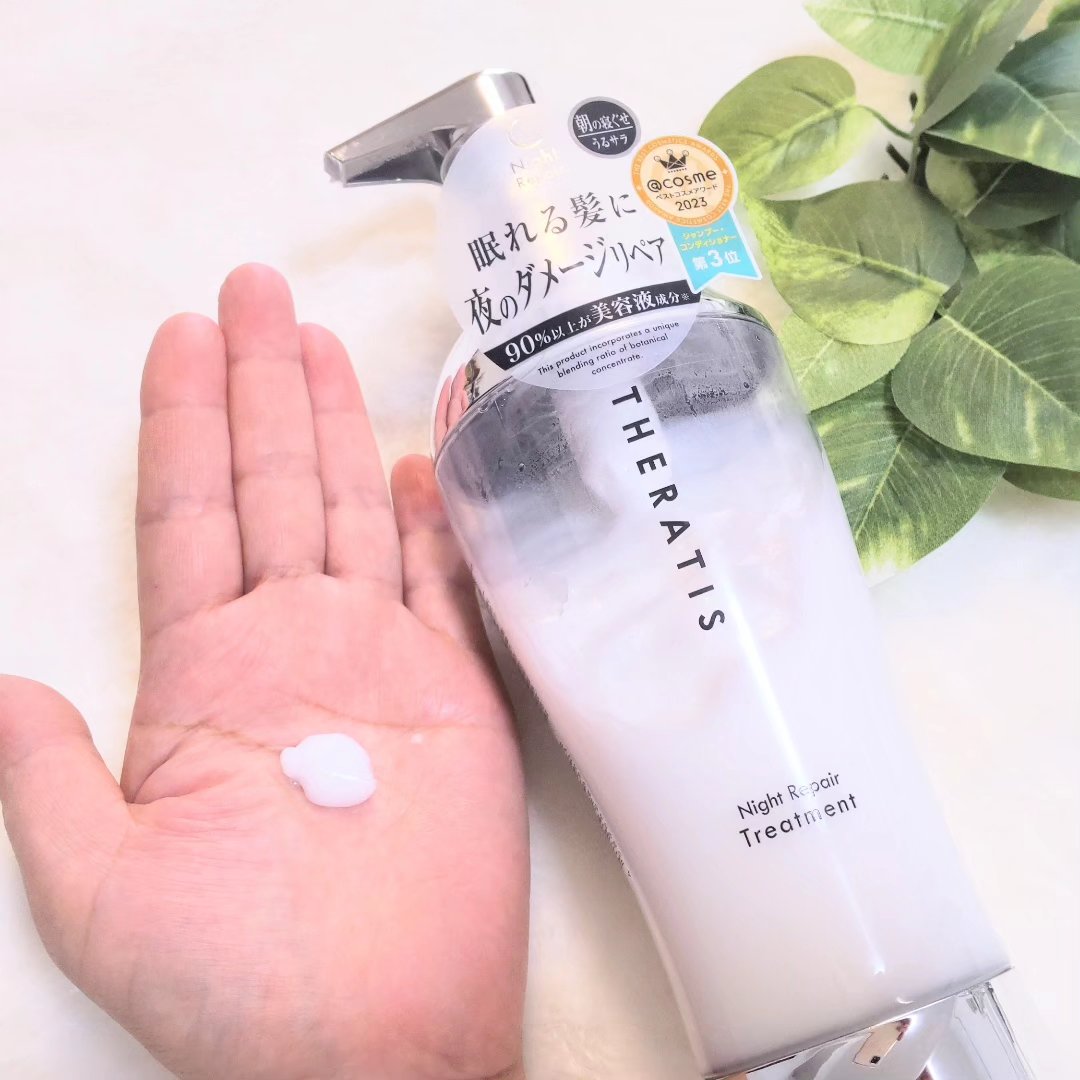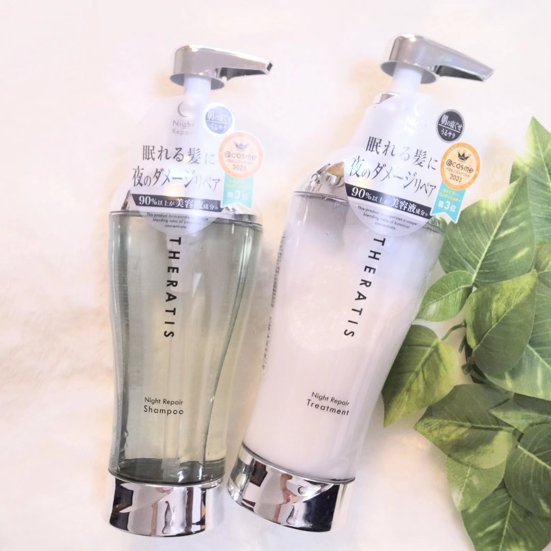 【THERATISbymiximナイトリペアシャンプー/ヘアトリートメント】寝ている間に補修成分がしみ込み、うねり・寝ぐせを抑制する新ナイトリペアヘアケアTHERATISbymixim❗️すでに使っているかな?90%以上が美容液成分というので...