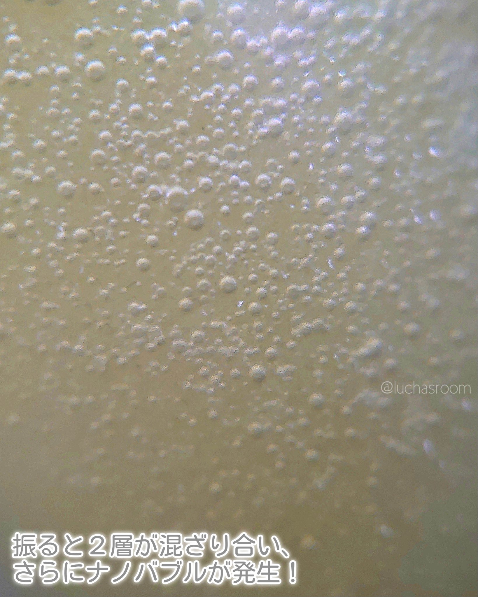- オイル層とモイスチャー層を混ぜ合わせることで水分と油分をバランスよく与える化粧水です。容器を振るだけで毛穴よりはるかに小さいナノバブルが発生し、3種の生ビタミンC *1(ピュアビタミンC*2 、速攻型ビタミンC*2 、浸透型ビタミンC*2 )やセラミド、アミノ酸、CICA(ツボクサエキス)など厳選した保湿成分の肌への効果*3をサポート。毛穴の目立ちにくいうるおいあふれるなめらかな肌へと導きます。 *1 整肌成分として配合、ビタミンCそのもの、もしくは分解されず角層まで届くよう誘導体化されたビタミンC(3ーOーエチルアスコルビン酸・アスコルビン酸・テトラヘキシルデカン酸アスコルビル) *2 整肌成分 *3 化粧品の効能・効果の範囲内