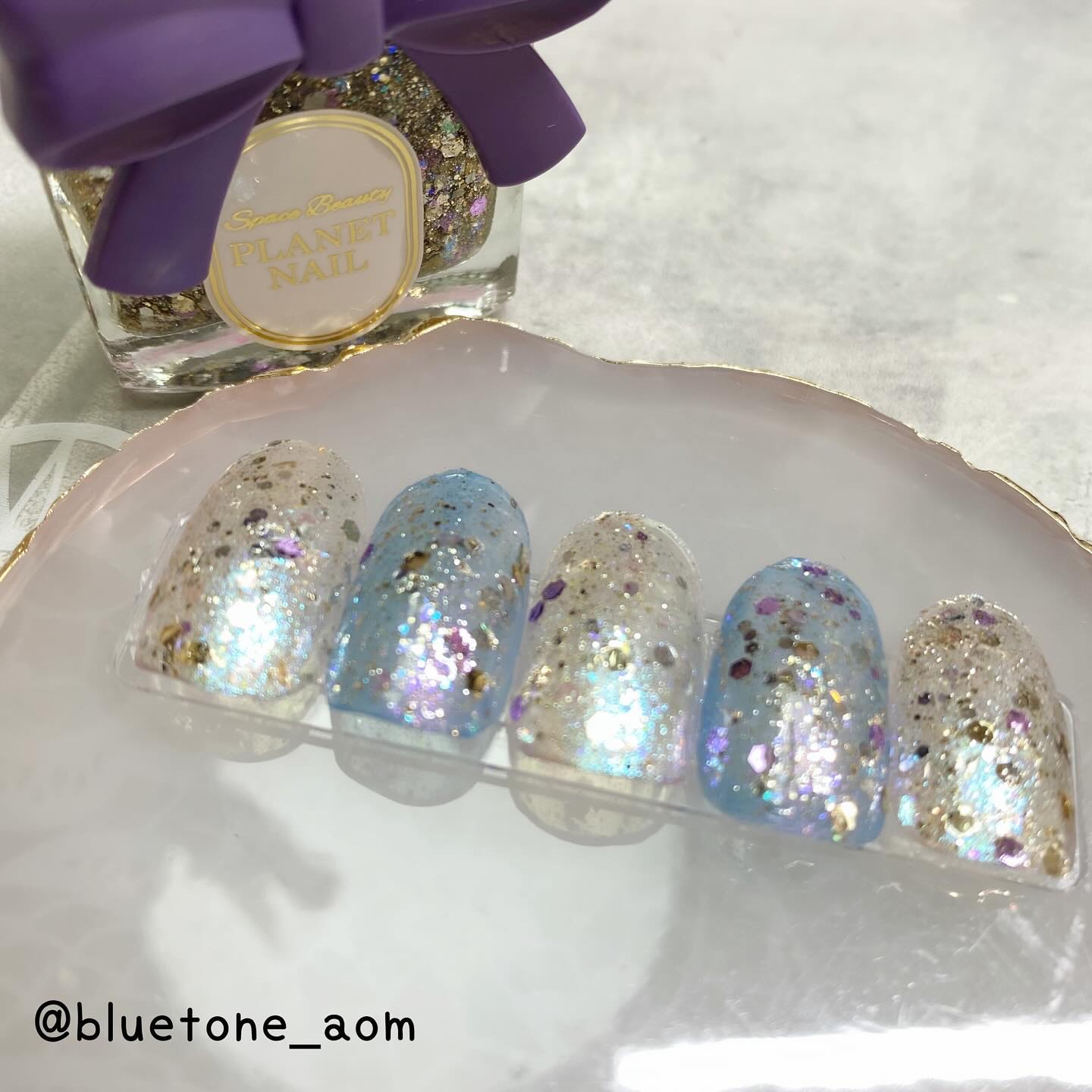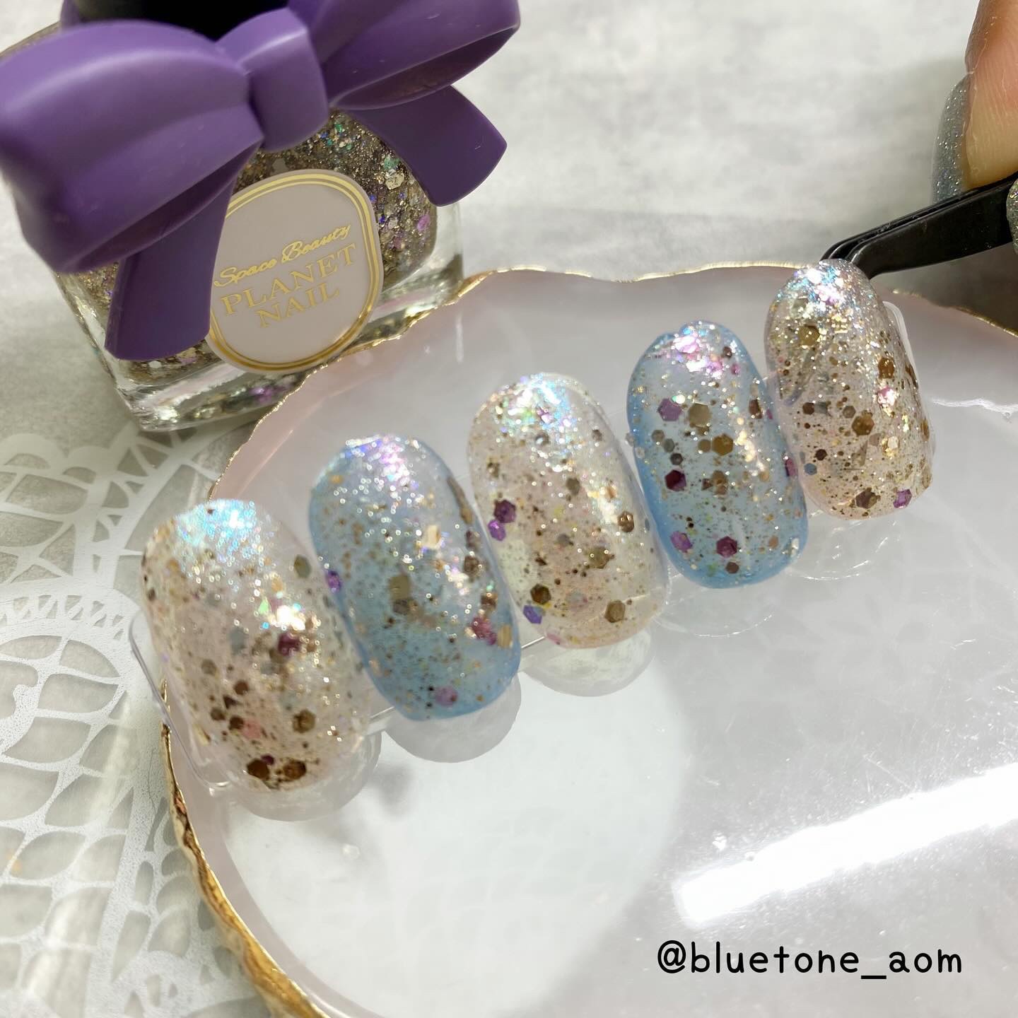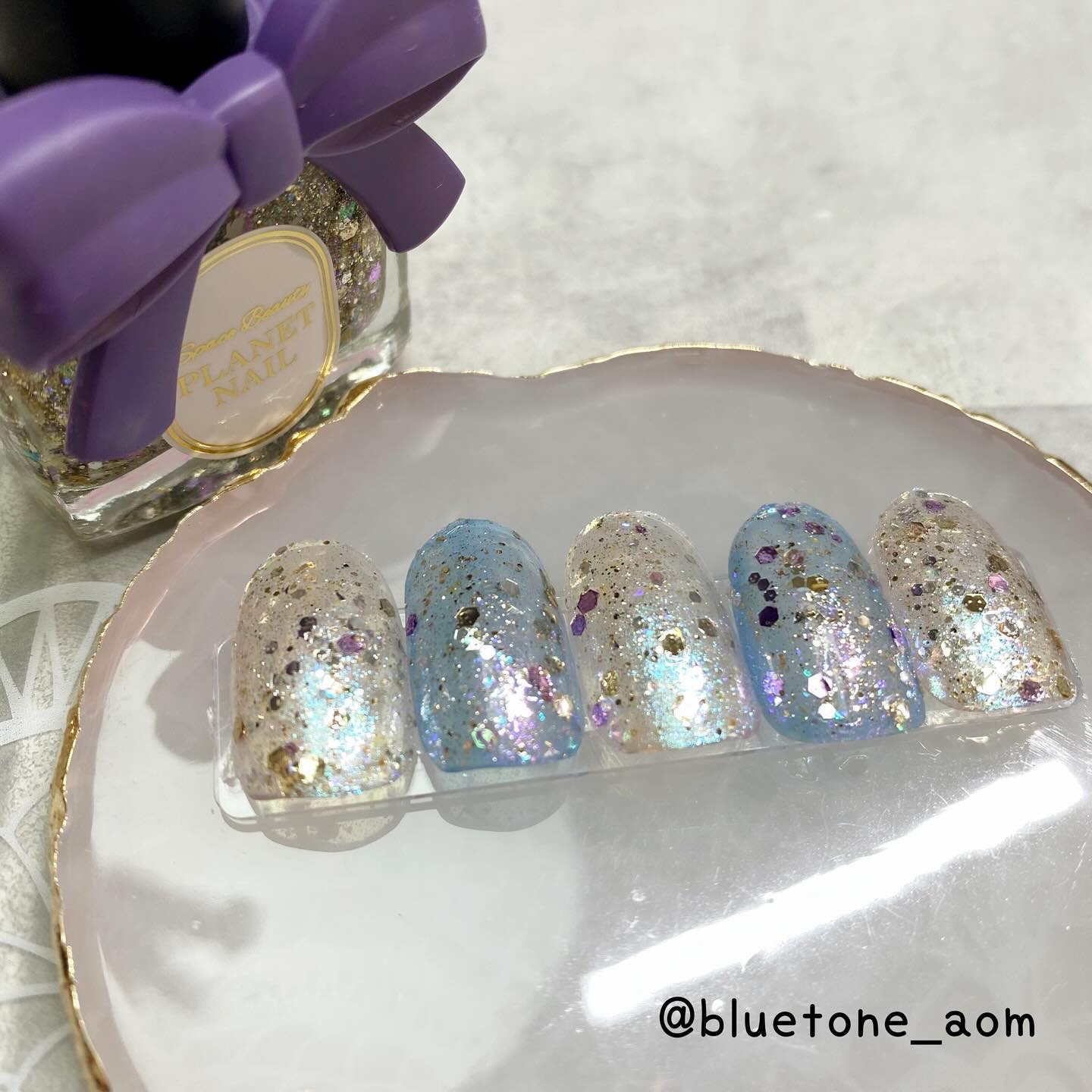 【星空ネイルのネイルデザイン】PLANET NAIL ネイルポリッシュの口コミ - シンプルにカラーの上から PLANET NAILさん(@planet.jp )の