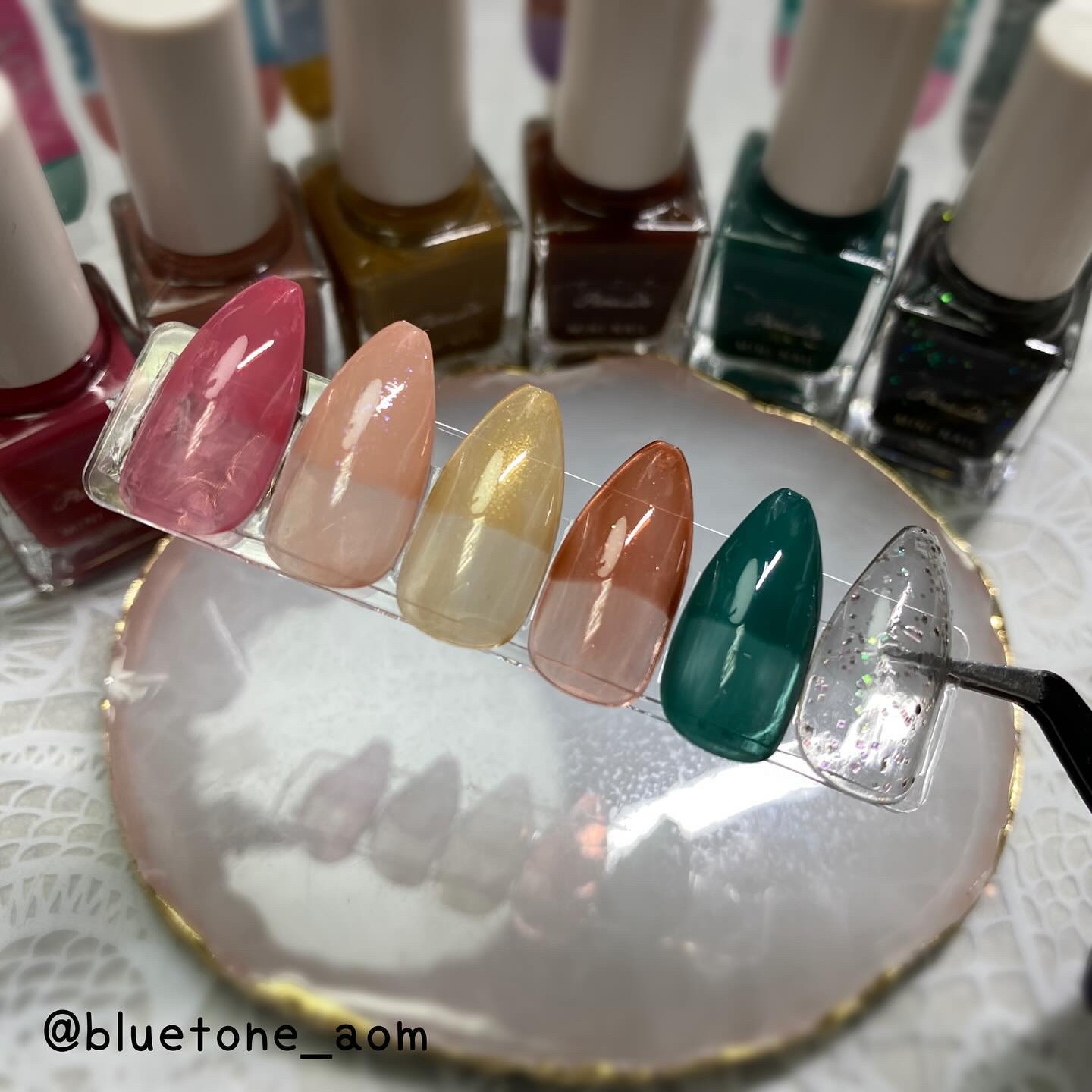 ラメがしっかりしてるし クリアカラーが入ってるから オーロラパウダー無しでも 充分キラキラしました! 反射強めのフィルムなので 実物はもっと うるうるとキラキラが強いです! ビー玉みたい🥺 ネイルシール長持ちさせたいけど ちょっと飽きてきたな〜って時とかに 全然違った印象になるのでオススメです! Seriaのベースジェル 本当にうるうるネイルしやすいので オススメしたい🙆♀️