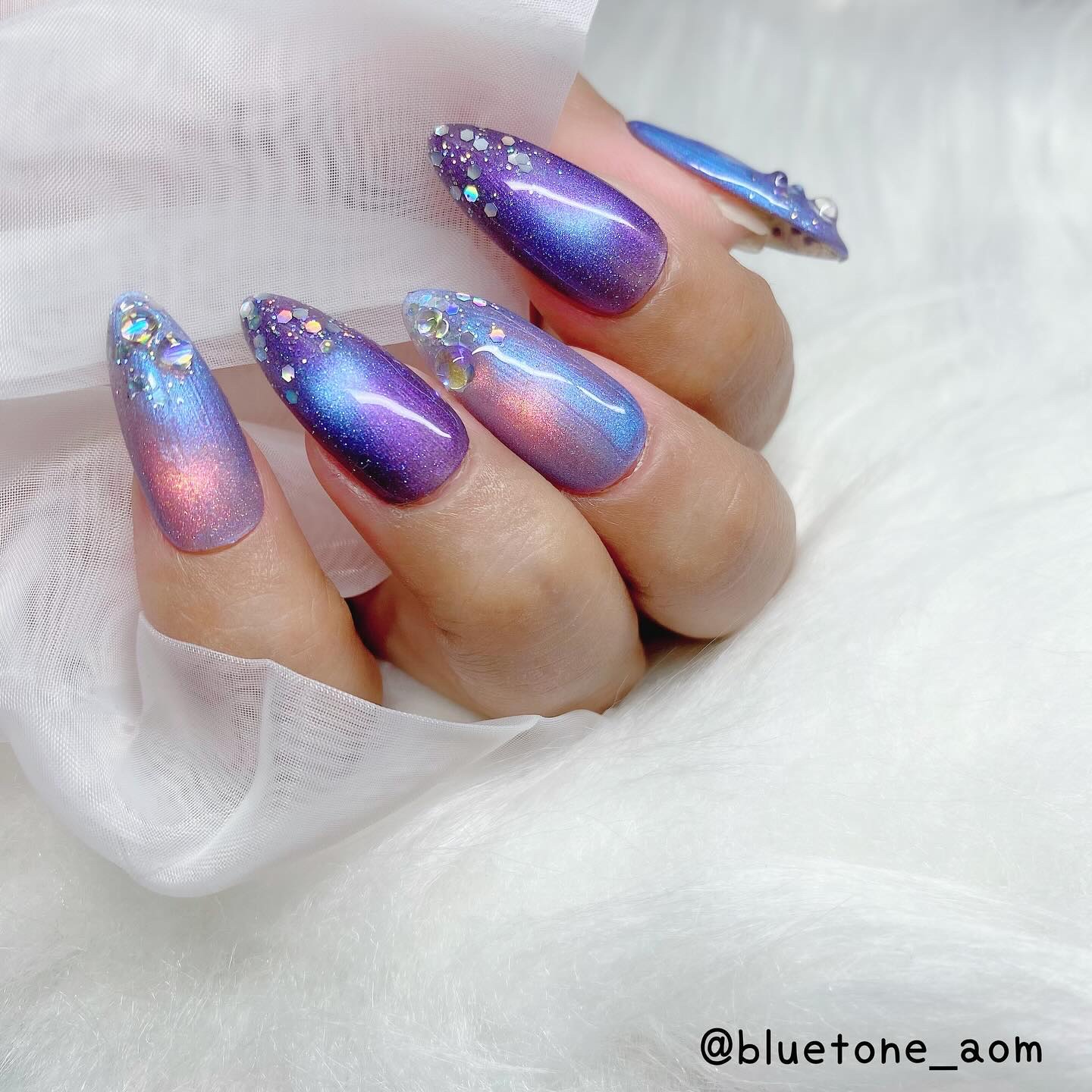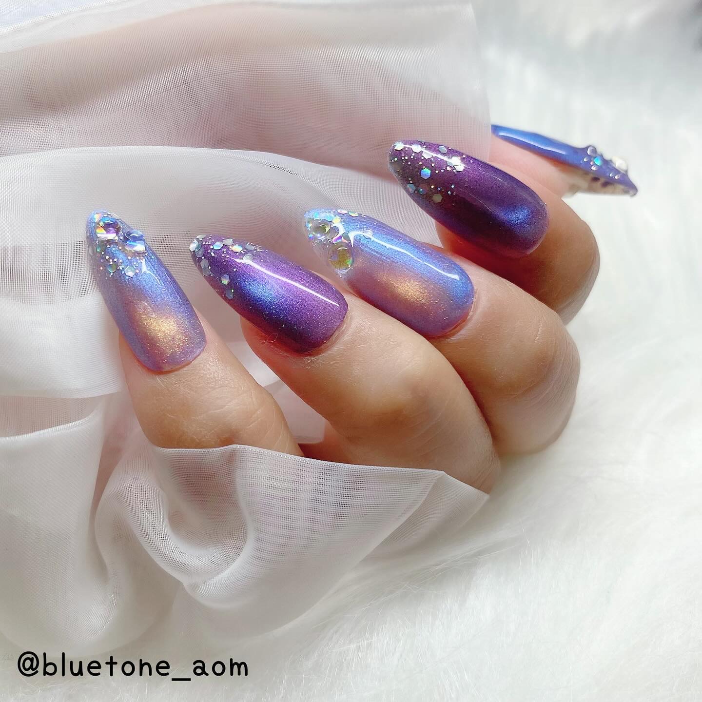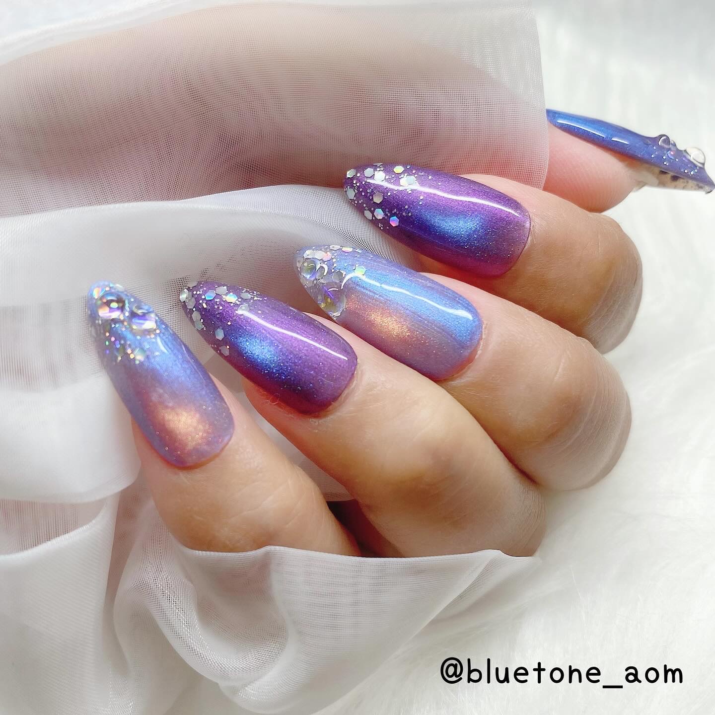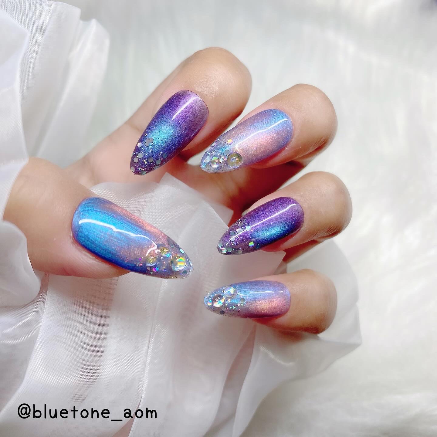 ラメがしっかりしてるし クリアカラーが入ってるから オーロラパウダー無しでも 充分キラキラしました! 反射強めのフィルムなので 実物はもっと うるうるとキラキラが強いです! ビー玉みたい🥺 ネイルシール長持ちさせたいけど ちょっと飽きてきたな〜って時とかに 全然違った印象になるのでオススメです! Seriaのベースジェル 本当にうるうるネイルしやすいので オススメしたい🙆♀️