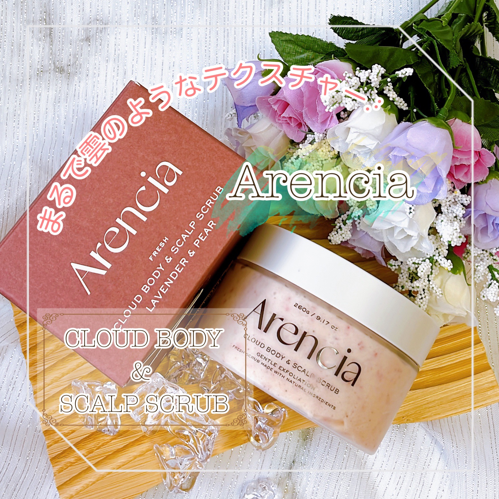 ArenciaCLOUDBODY&SCALPSCRUBLAVENDER&PEAR触れたくなるモチモチ素肌へボディと頭皮に使える多機能なスクラブです梨の甘い香りと爽やかなラベンダーの香りが蓋を開けた瞬間から広がります微細な粒子スクラブで角質ケア...