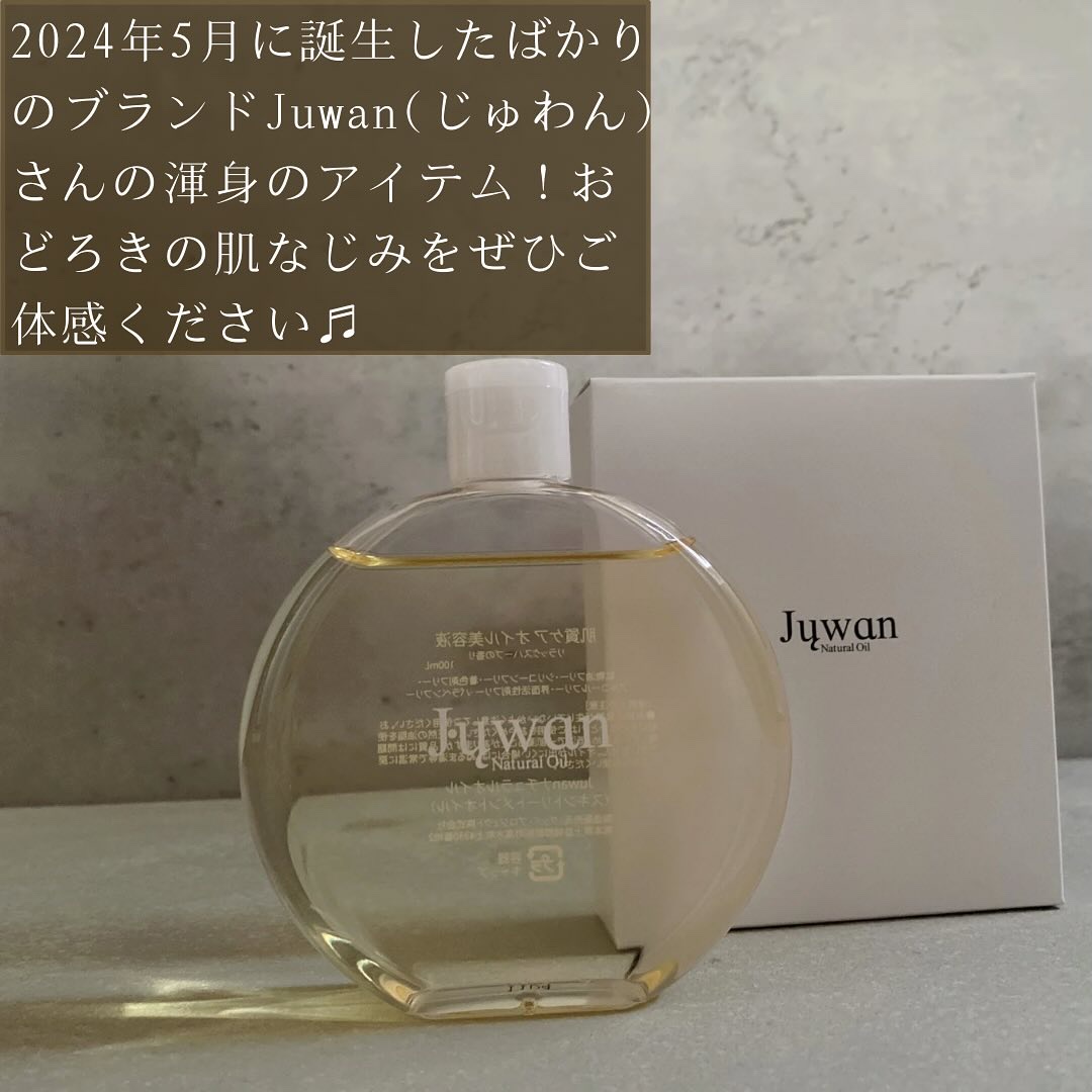 - POINT 01 Juwanナチュラルオイルはヒトの皮脂本来の脂肪酸バランスに着目。 馬油*1をメインに、ホホバ種子油(*1)、スクワラン(*1)、サトウキビ由来の水添ファルネセン*1の4種のオイルを配合。厳選された4種のオイルを独自設計により配合し、ヒトの皮脂構成に近いJuwanナチュラルオイルが誕生しました。皮脂に近いオイル設計であるため、肌なじみがよく、角質層へしっかり浸透し、肌を柔らかくしっとりと仕上げます。 (*1) エモリエント成分 POINT 02 各オイル成分がバランスよく肌へはたらきかけ、バリア機能をサポートします。 全身の保湿はもちろん、ザラつきが気になる箇所に週1〜2回素肌のクレンジング(もしくは洗顔料と合わせてメイク落とし)としてご使用頂くことをおすすめします。 肌をしっとり整え、ツヤ肌へ導くJuwanオリジナルオイルは美容オイルとしてのご使用はもちろん、オイルクレンジングとして毛穴の黒ずみケアにもお使いいただけます。 POINT03 鉱物油フリー・シリコンフリー・着色剤フリー・アルコールフリー・界面活性剤フリー・パラベンフリーでやさしい使い心地。年齢問わずお使いいただけますのでご家族で一緒にご使用いただけます。容量は毎日たっぷりお使いいただける100mlです。